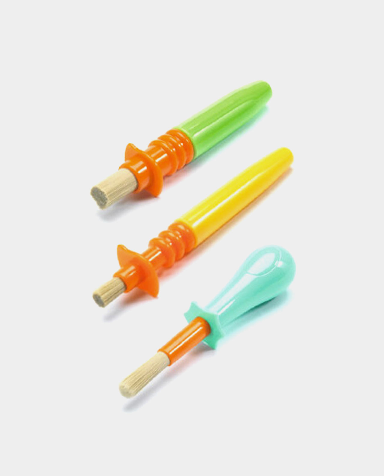 Set de 3 pinceles orignales para niños, que no tocan la mesa, ni dan vueltas, de Djeco. Tienen un gran mango ergonómico. Perfecto para que los más pequeños aprendan a colorear de forma sencilla y divertida.