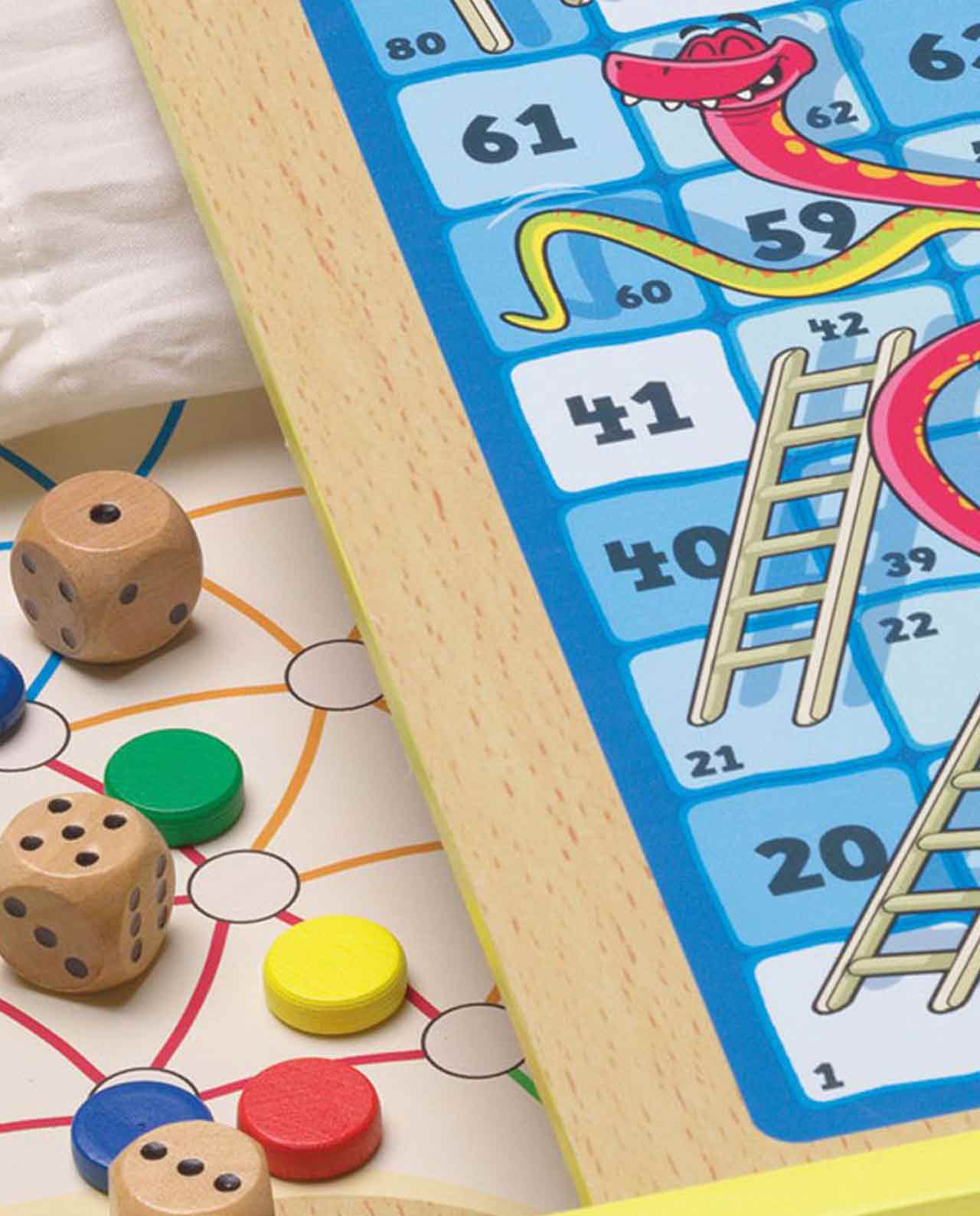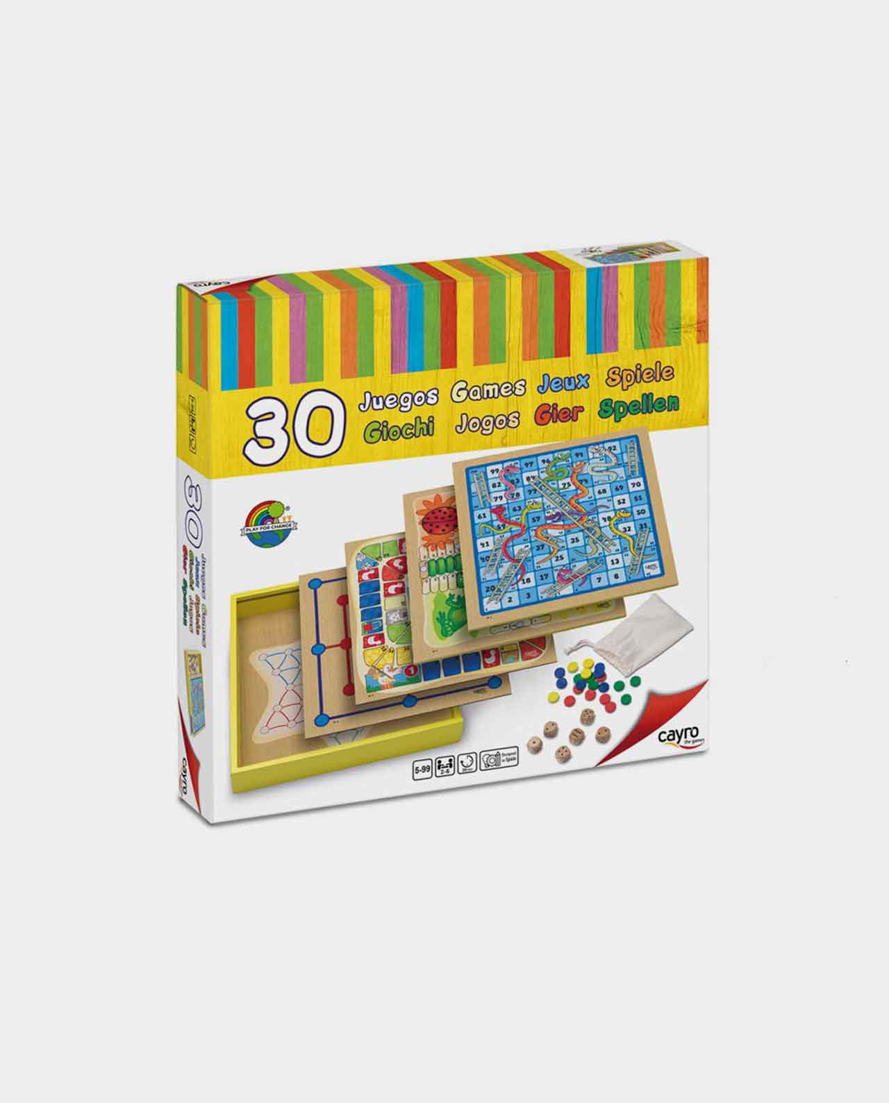 Disfruta de divertidos momentos de juego con esta caja que incluye 30 juegos, todo fabricado en madera.