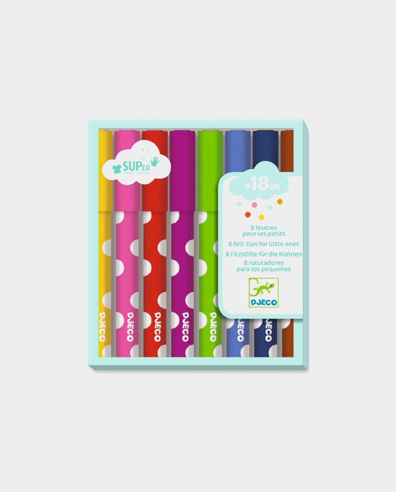 Descubre los rotuladores para los pequeños de Djeco, marcadores lavables para niños a partir de los 18 meses. Fieltros grandes que son fáciles de sostener con tinta lavable para mantener su ropa o manos limpias. ¡Porque crear con buenas herramientas hace que las actividades sean más fáciles y más hermosas! Accesorios imprescindibles para explotar la creatividad de los niños.