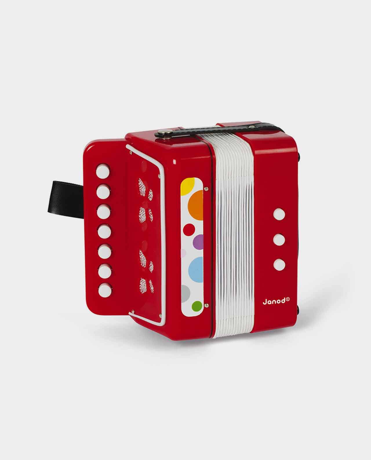 Este acordeón clásico de juguete para niños a partir de 3 años está especialmente adaptado para los pequeños con su correa de sujeción de plástico. Una vez que le des este juguete a tu hijo, ¡ya no querrá separarse de él nunca más! El descubrimiento de la música es una etapa importante en el aprendizaje de los niños y en su desarrollo cognitivo. Escuchar los diferentes sonidos, manipular un instrumento, seguir un ritmo… son experiencias sensoriales muy beneficiosas.