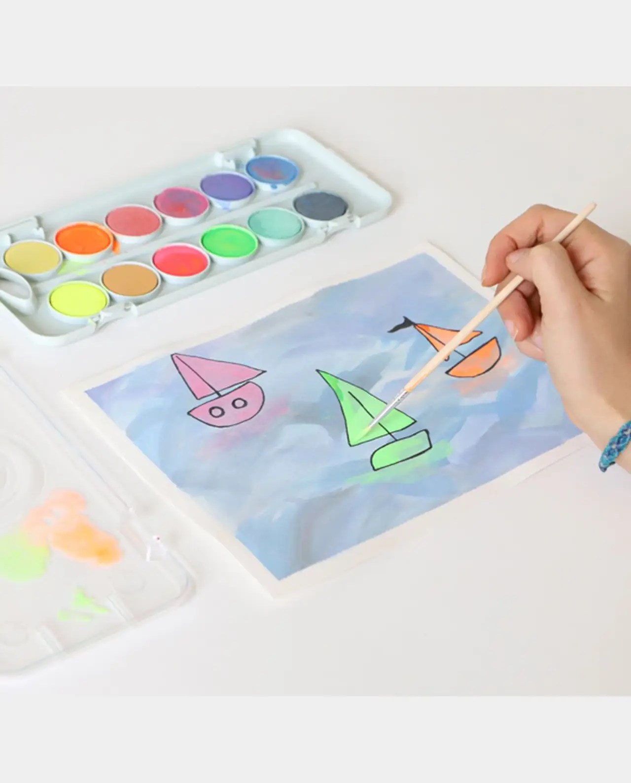 La caja de acuarelas de Primo incluye 7 colores metálicos y 5 colores flúor para mezclar dejar volar tu imaginación. Abre la caja, dale la vuelta a la tapa y mezcla los colores como tu quieras y haz auténticas obras de arte. Pinta sobre papel y cartón, los resultados son luminosos y brillantes.