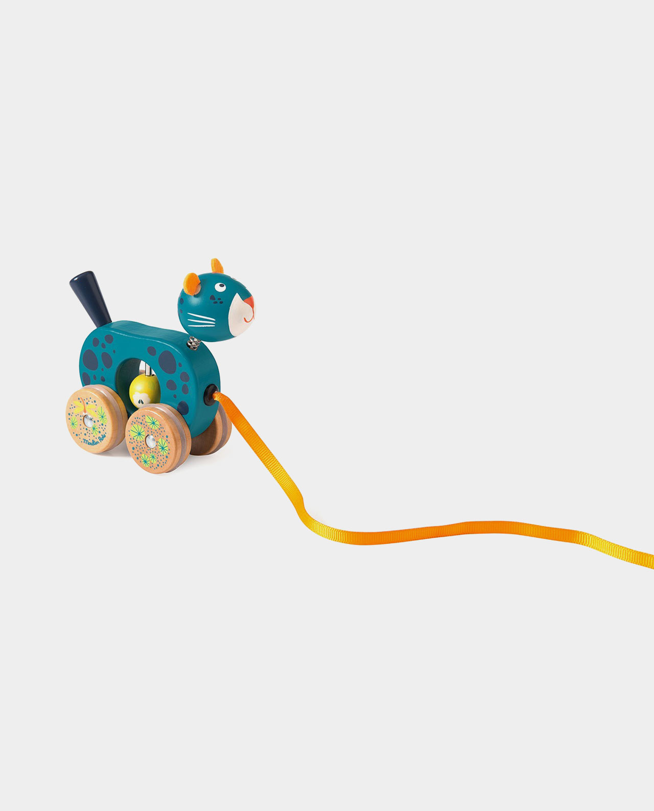 Al tirar del lazo, la pantera avanza y su cola se pone en movimiento. Bebé entenderá muy rápido la relación causa-efecto que se produce cuando arrastra la pantera de madera y este descubrimiento le llevará a muchas horas de juego fomentando su gateo, el control del equilibrio, sus primeros pasos y la comprensión de conceptos como espacio, distancia, volumen y velocidad o conceptos contrarios como rápido/lento y adelante/atrás.
