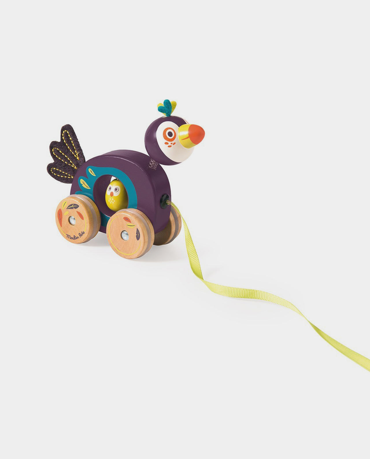 Al tirar del lazo, el alegre tucán se pone en movimiento y su cabeza se agita al mismo tiempo. En su interior, un pajarito de madera inamovible para entretener a Bebé incluso cuando el arrastre no esté en movimiento.Bebé entenderá muy rápido la relación causa-efecto que se produce cuando arrastra a su nuevo amigo, el tucán de la jungla, y este descubrimiento le llevará a muchas horas de juego fomentando su gateo, el control del equilibrio, sus primeros pasos y la comprensión de conceptos como espacio, distancia, volumen y velocidad o conceptos contrarios como rápido/lento y adelante/atrás.