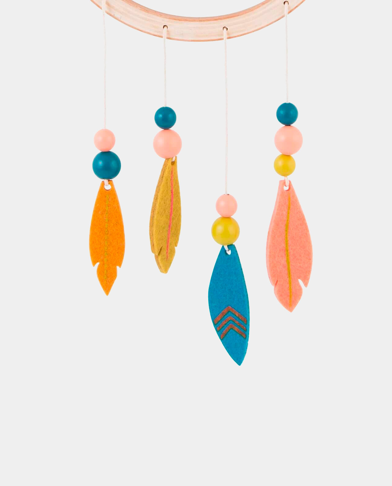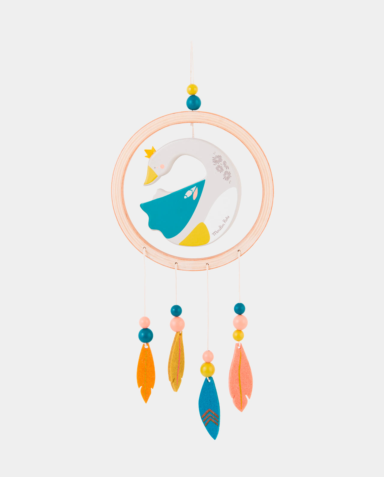 En este atrapasueños de madera Mamá Olga será la encargada de velar por los sueños del peque, filtrando las pesadillas que bajarán por sus plumas de fieltro para que sean quemadas por la luz del sol al amanecer… y que tu peque sólo recuerde los sueños bellos.