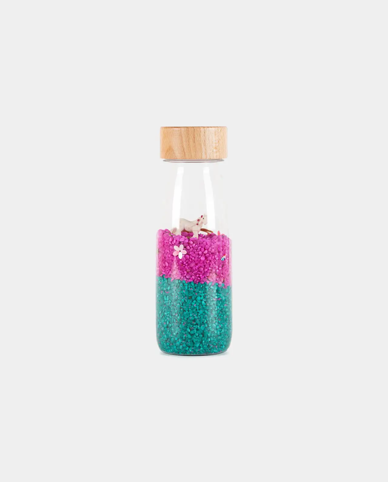 Mirar, agitar… ¡y escuchar! Tan simple y tan efectivo como eso. Los pequeños objetos de la serie SOUND BOTTLE son un auténtico espectáculo para los más pequeños. A la identificación visual de las piezas contenidas se une la estimulación auditiva, especialmente importante en el primer año de vida de los bebés.