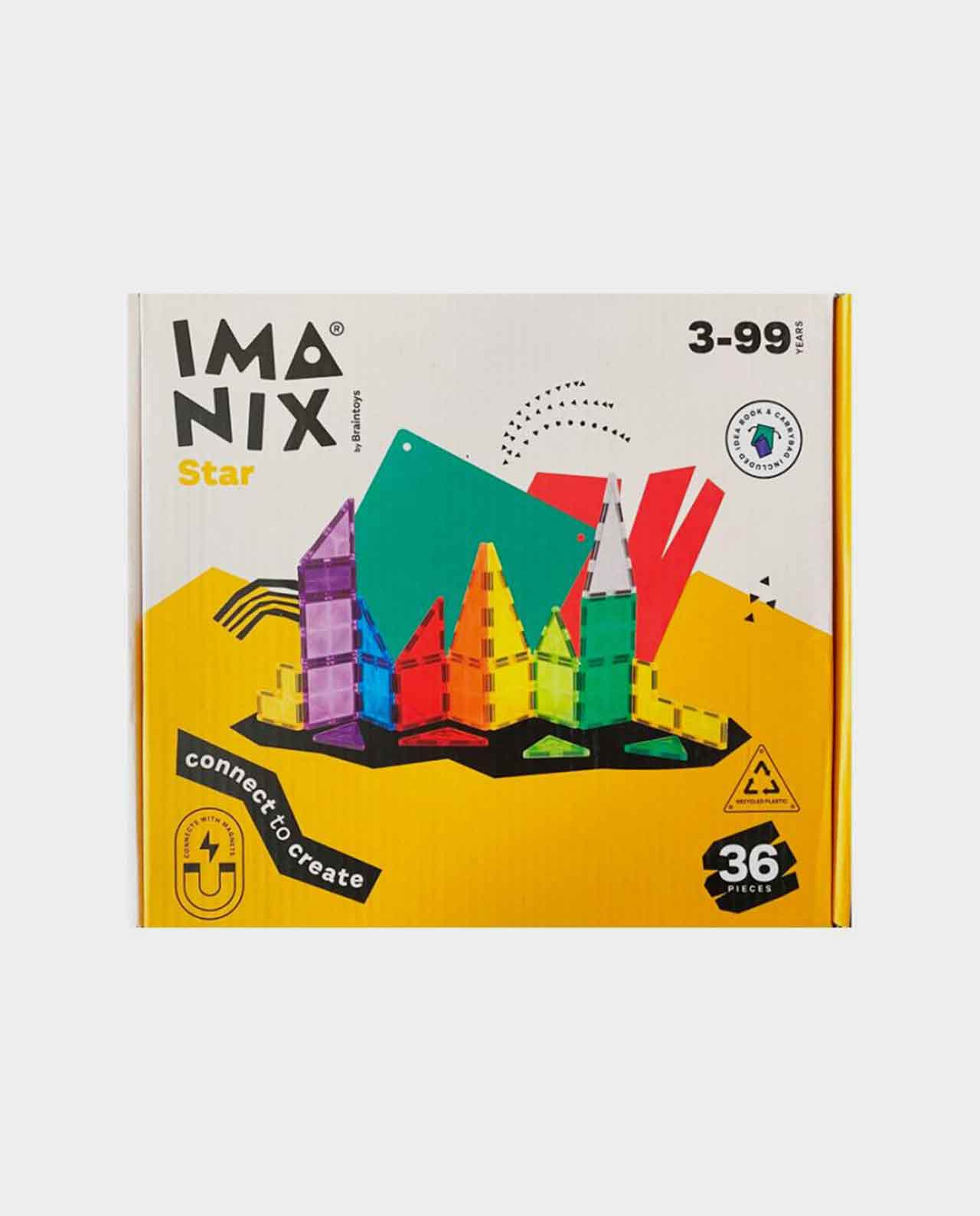 Imanix permite a los niños construir formas 2D y 3D, dando rienda suelta a su imaginación y creatividad. Gracias a sus colores, formas y fácil manipulación, los niños podrán crear infinitas construcciones (figuras planas, animales, flores, vehículos, torres, castillos…).