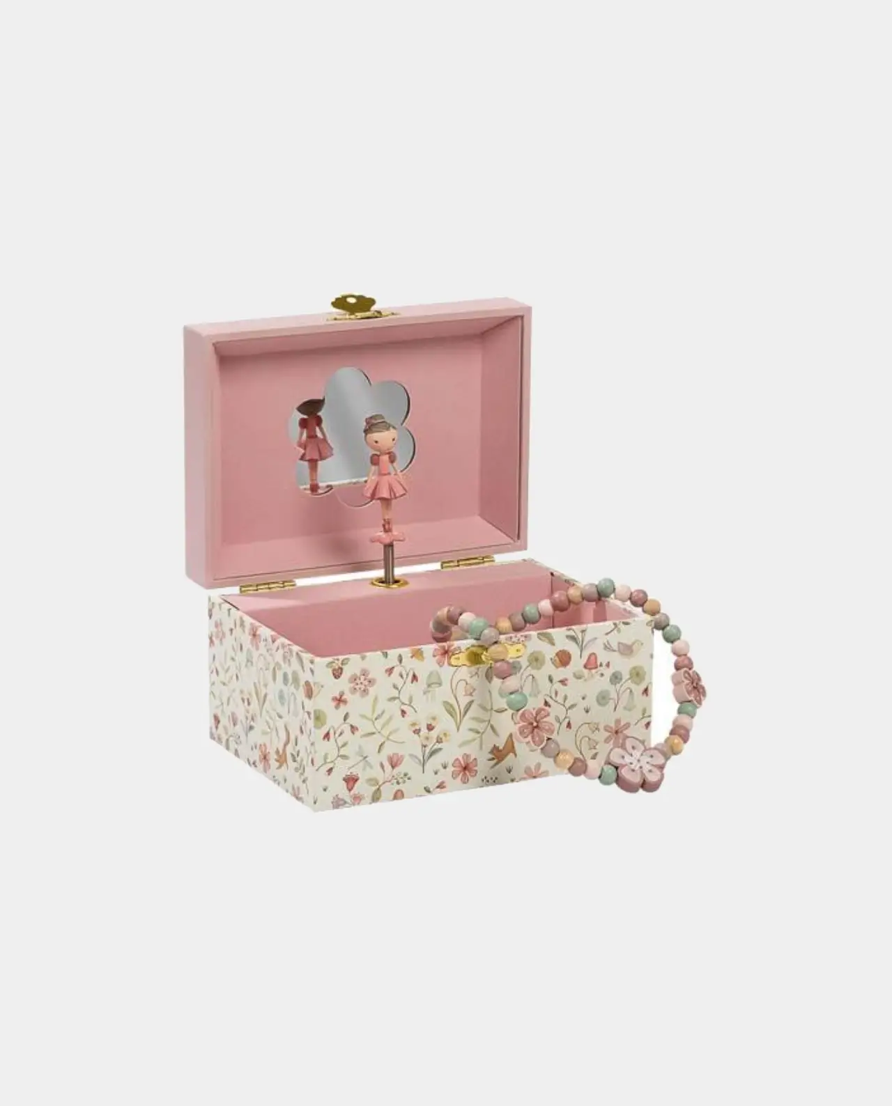 ¡Haz feliz a tu pequeño con su propio cofre musical para joyas! Este colorido cofre con las más tiernas hadas del jardín ofrece suficiente espacio para las joyas más bonitas u otros objetos preciosos. Después de darle cuerda, suena música al abrir el cofre y un pequeño ciervo empieza a bailar frente al espejo.