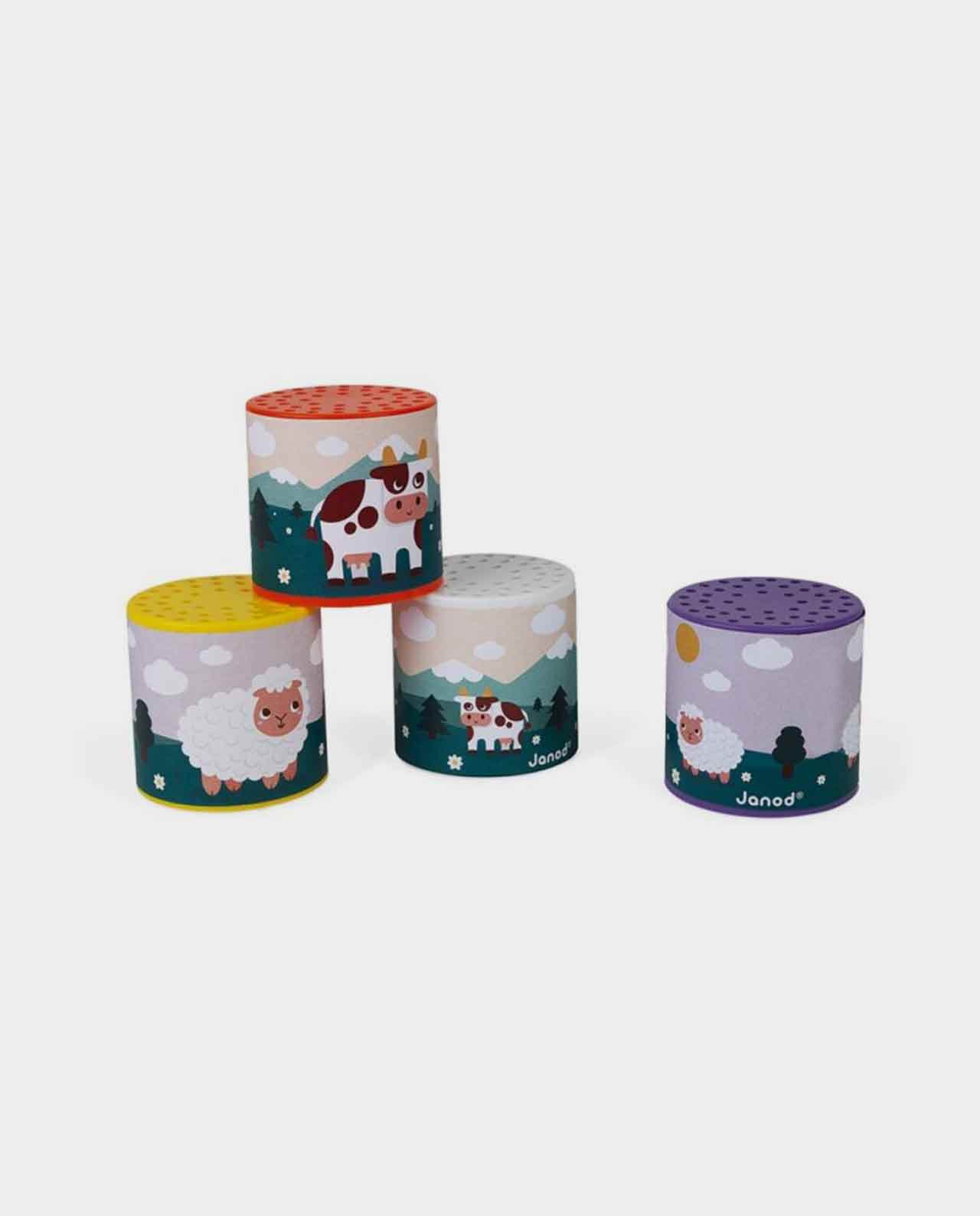 Cajas musical de Janod que representa el sonido de una vaquita, que con poner la caja al revés y darle la vuelta para escuchar el sonido del animal.