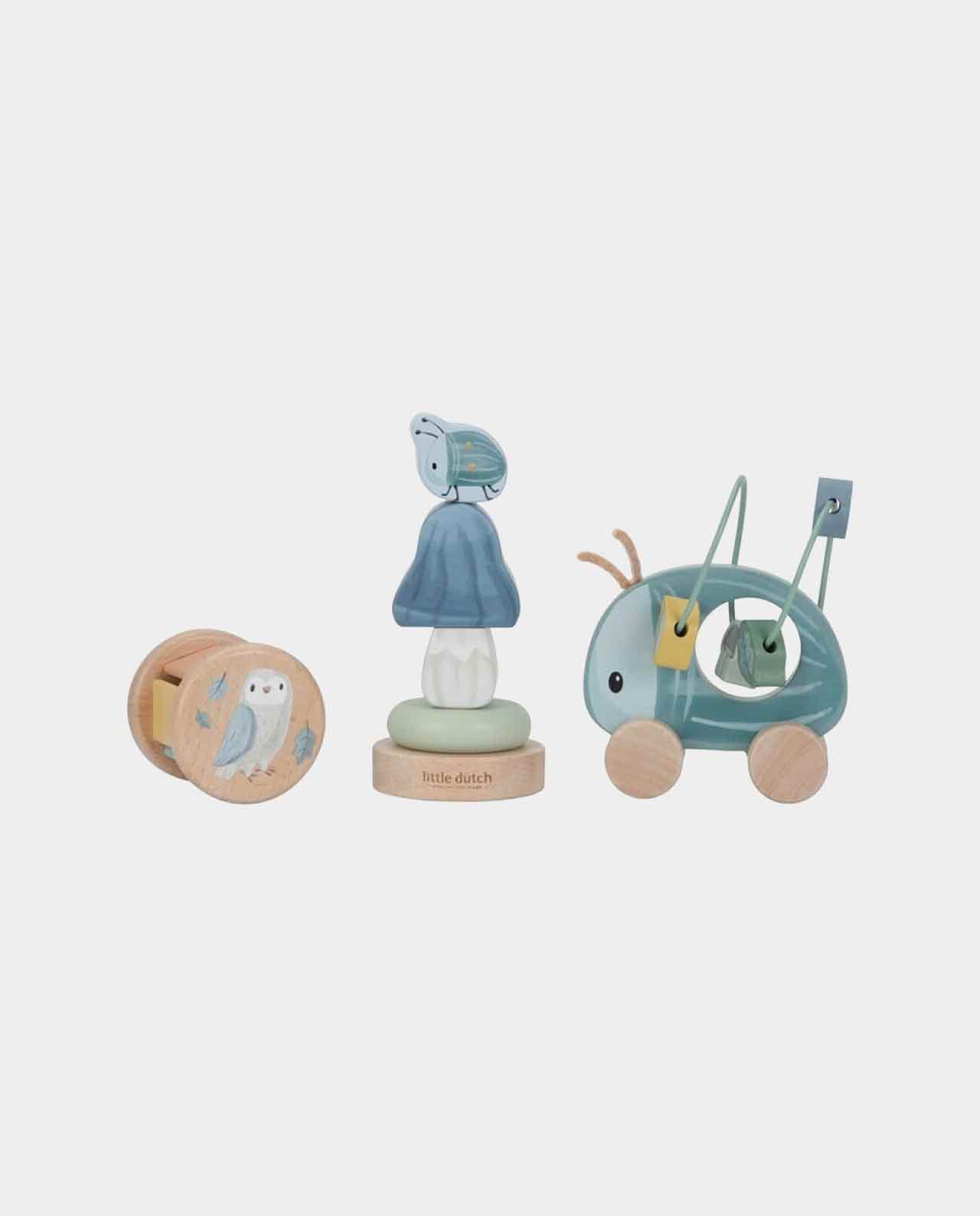 Esta caja de regalo de madera Forest Friends Little Dutch es una bonita forma de regalar los primeros juguetes para trabajar la motricidad fina y la coordinación ojo-mano a los más peques.