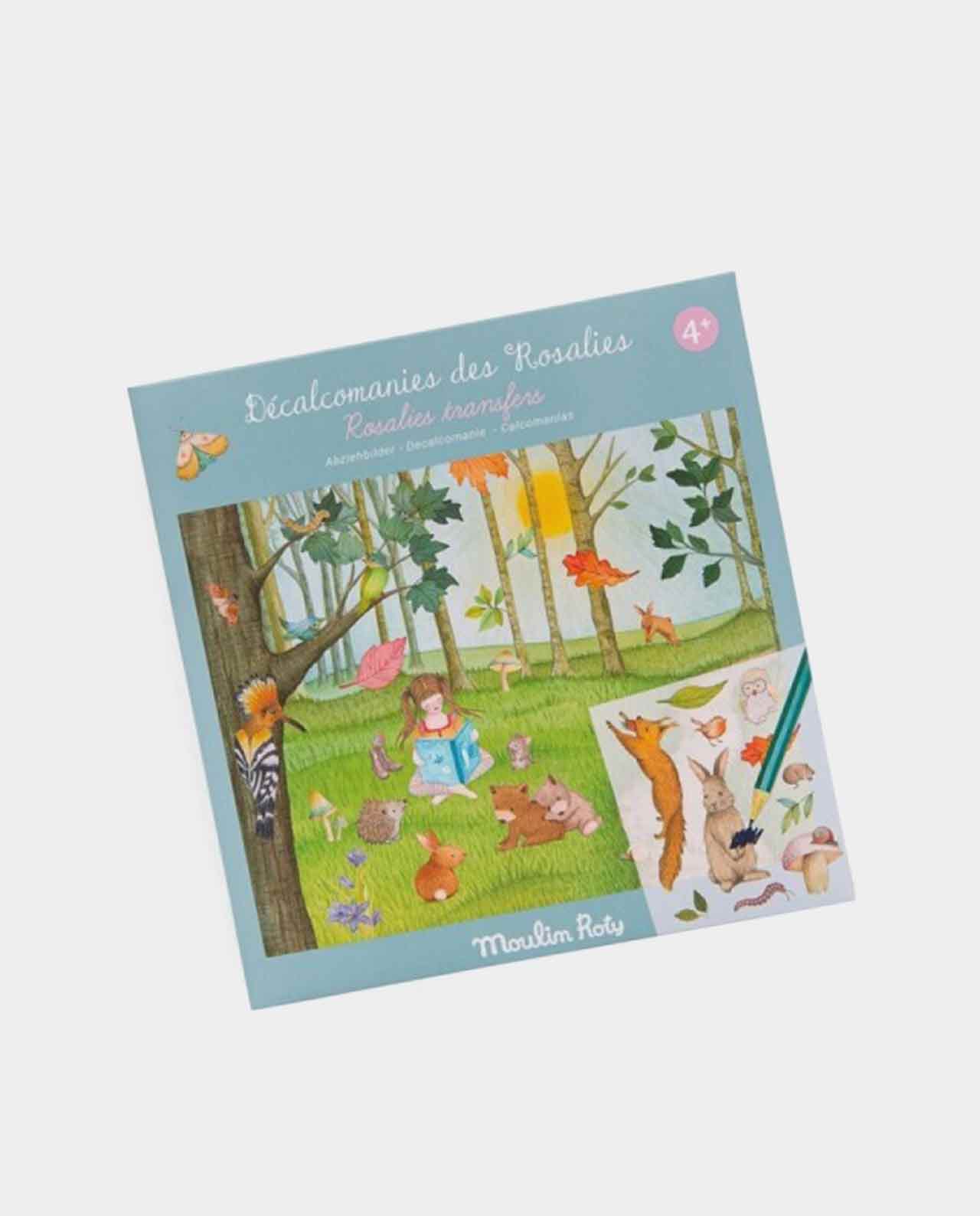 Explorar el mundo con las calcomanías de Les Rosalies de Moulin Roty ¡es muy fácil! Coloca la ilustración elegida sobre uno de los 2 escenarios bellamente ilustrados o de algún objeto que quieras personalizar, frota con un lápiz y observara cómo la transferencia ocurre como por arte de magia.
