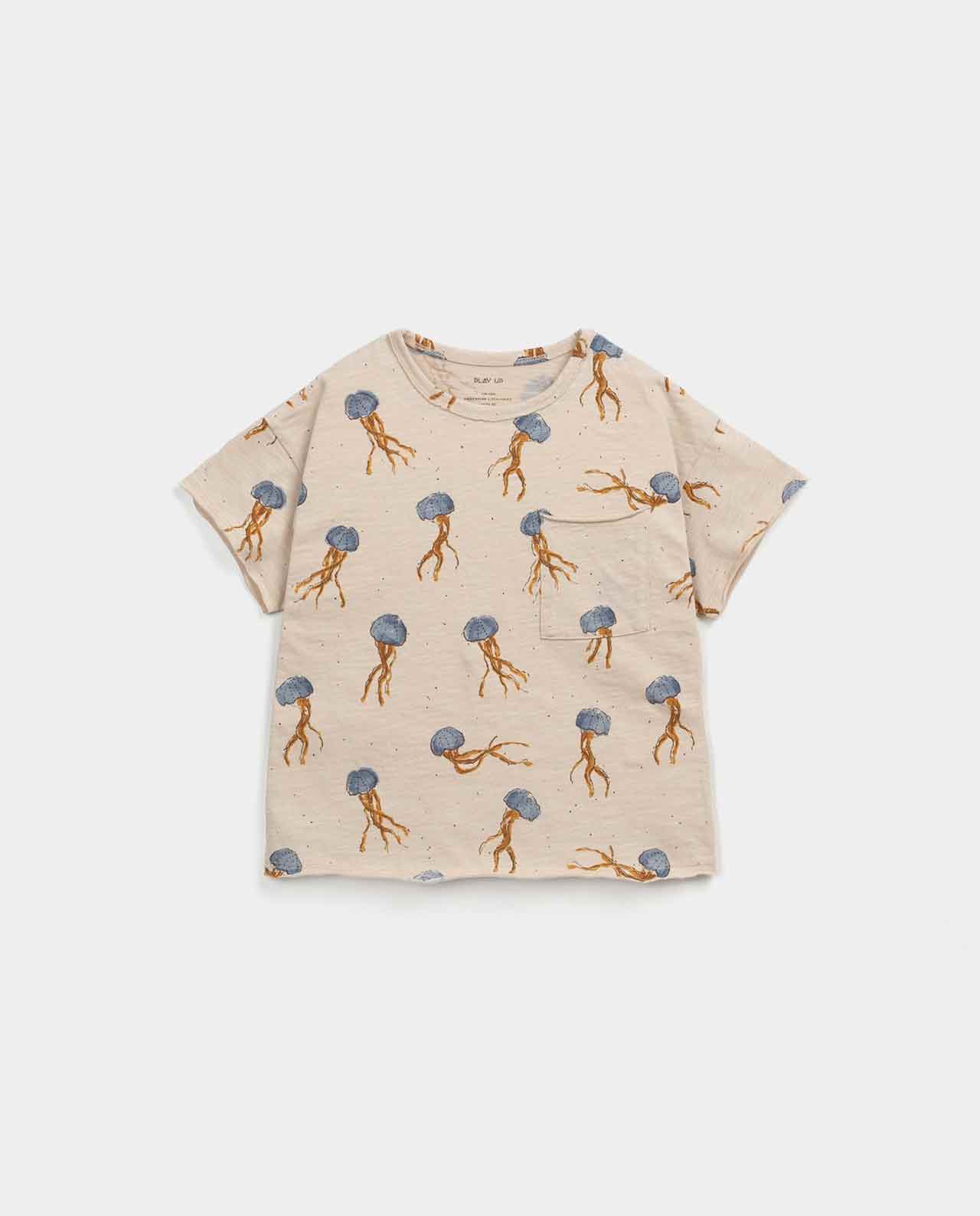 Esta camiseta está confeccionada con punto de algodón orgánico, en color Felt. Es un modelo con cuello redondo, tiene un bolsillo en el pecho y detalles en corte vivo.