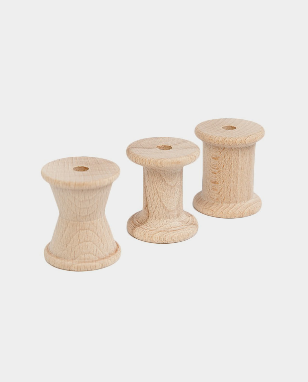 Los carretes de madera de Grapat es un material que favorece el pensamiento lógico-matemático y las destrezas motrices.