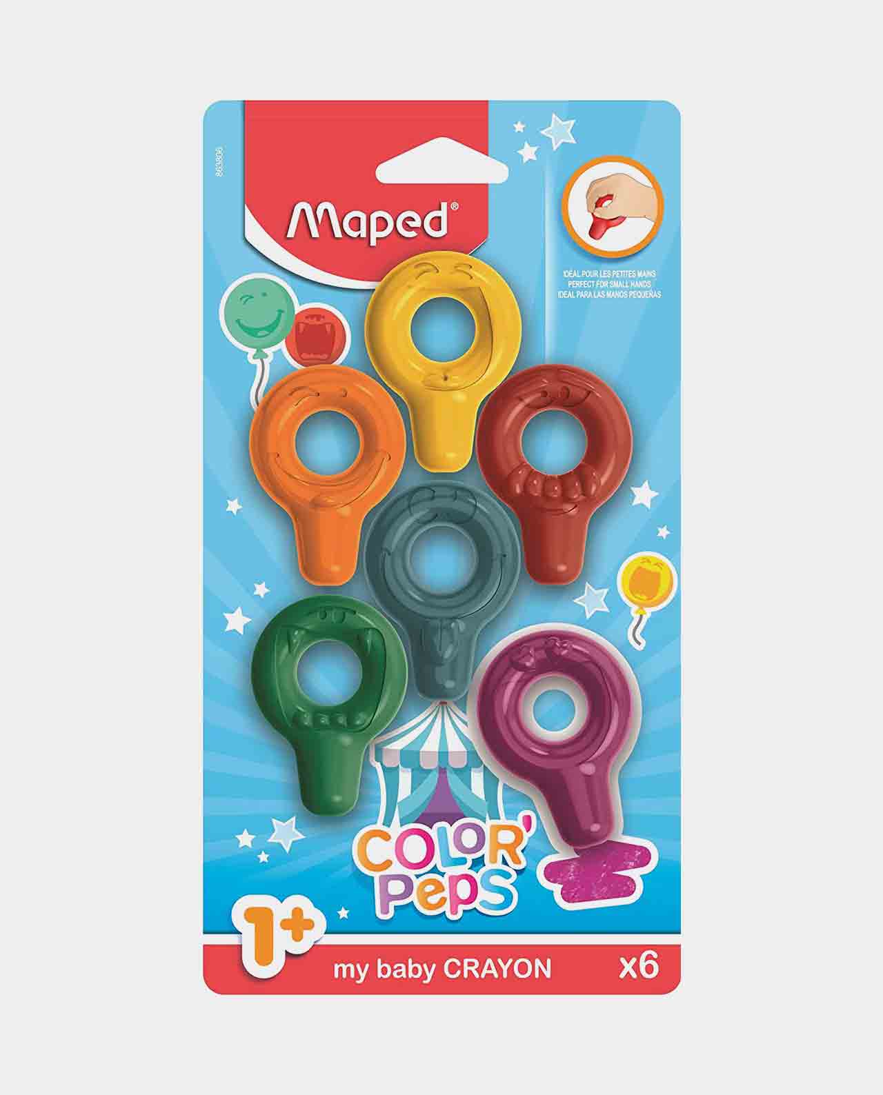 Ceras de colores para pintar en todo tipo de superficies (piel, papel, tela, etc). El primer crayón del bebé, a partir de los 12 meses. Forma redondeada para facilitar el agarre de los niños.