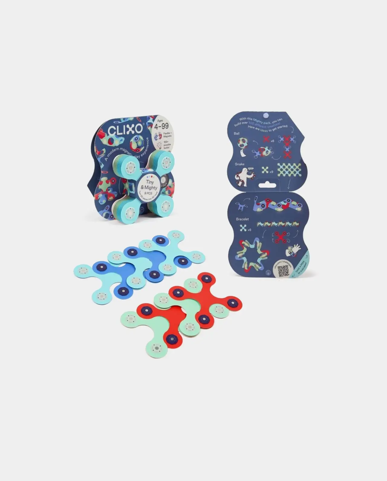 Clixo es un innovador sistema de juego basado en piezas flexibles y seguras que se conectan fácilmente con imanes. Su diseño modular y multisensorial permite a niños y adultos experimentar, construir y aprender sin límites.