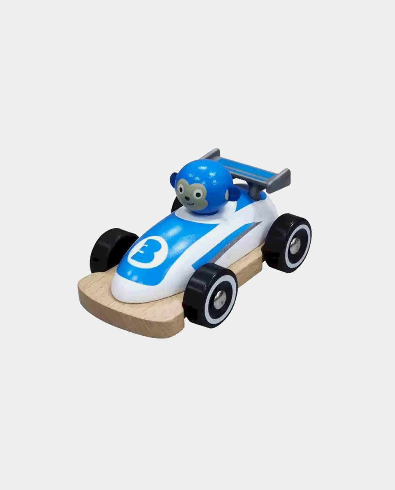 ¡Burrum-burrum! Este vehículo de carreras azul es una monería, su cabeza y las ruedas puede girar. Un juguete para agarrar, arrastrar y divertirse con él.