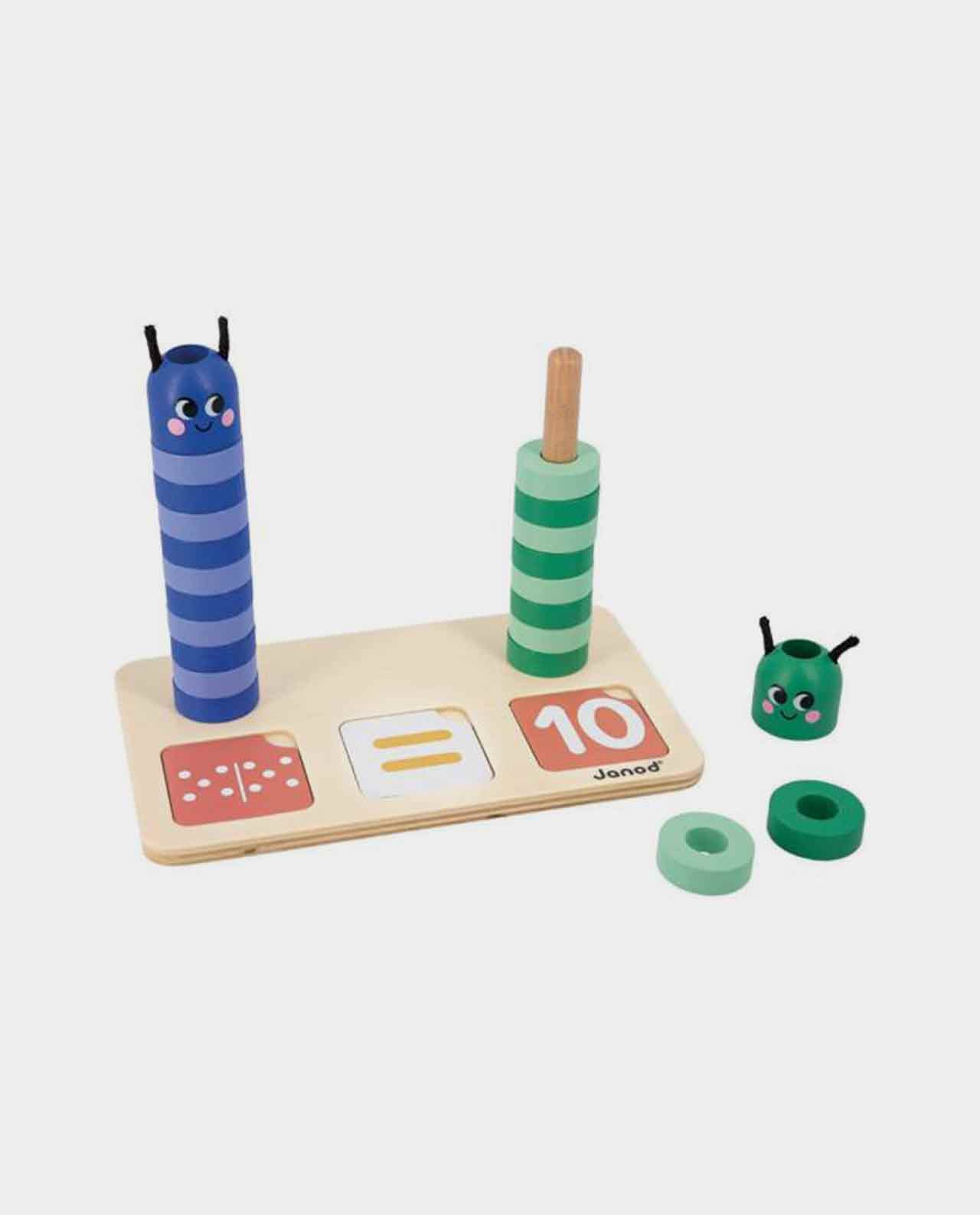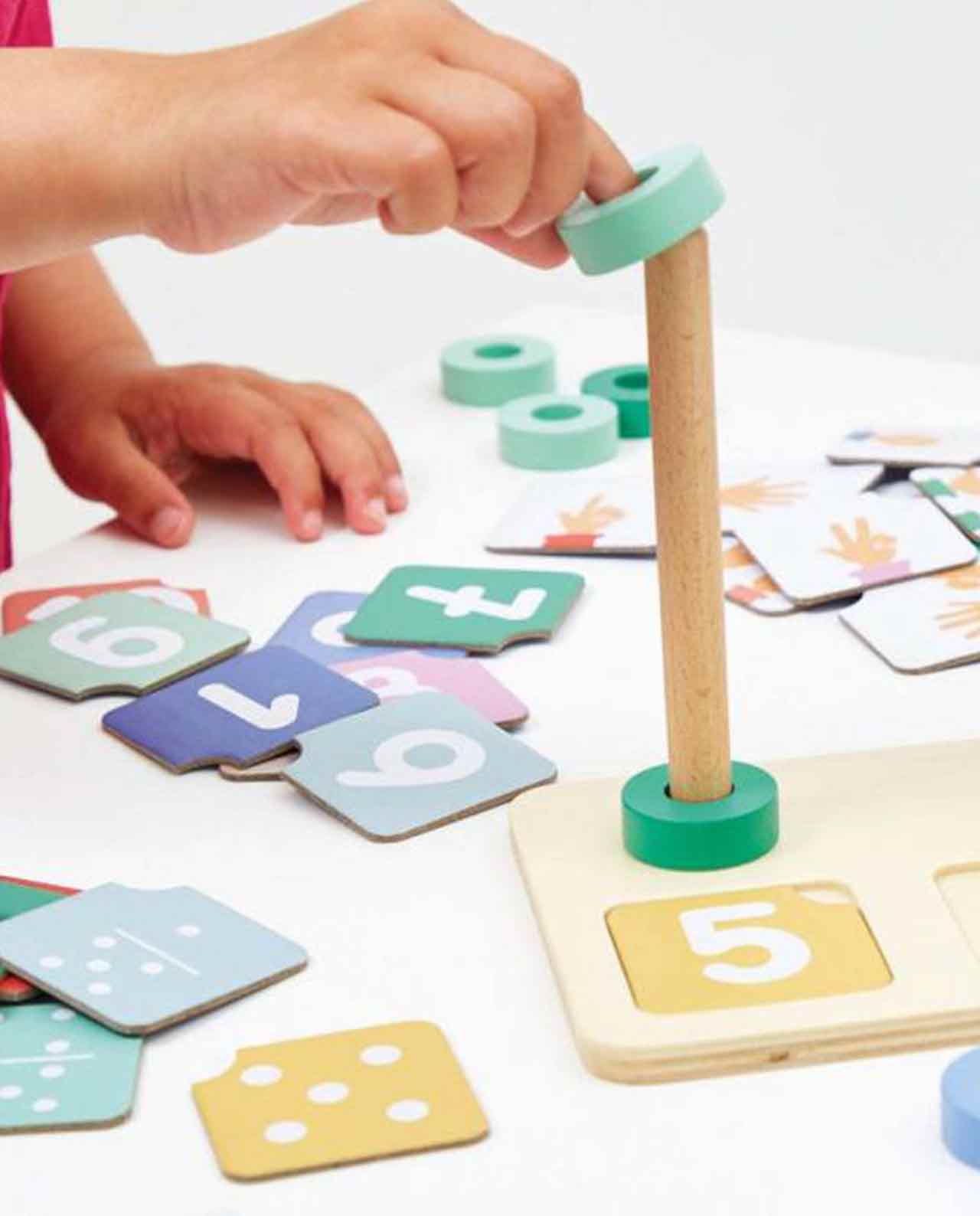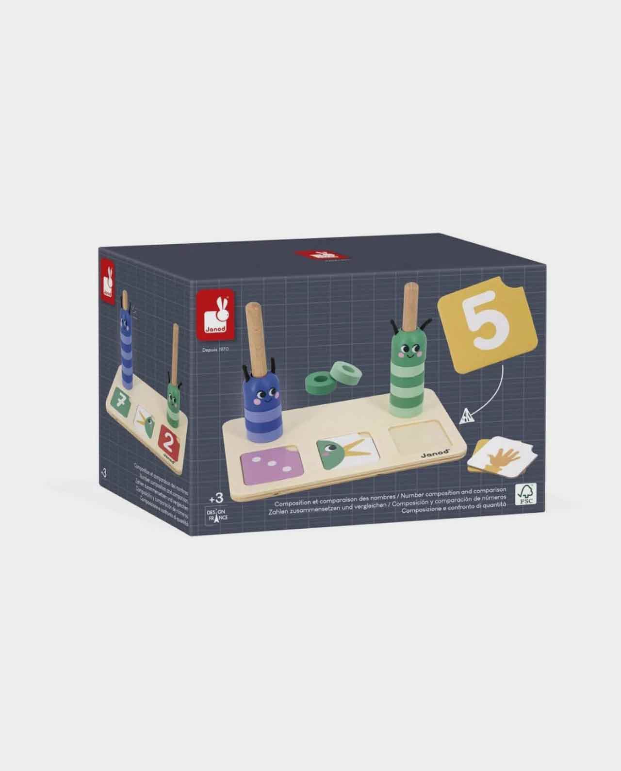 Juego pedagógico Composición y Comparación de números de Janod, es un juego de madera que permite a los niños a partir de 3 años aprender a reconocer números, compararlos y expresar la cantidad.
