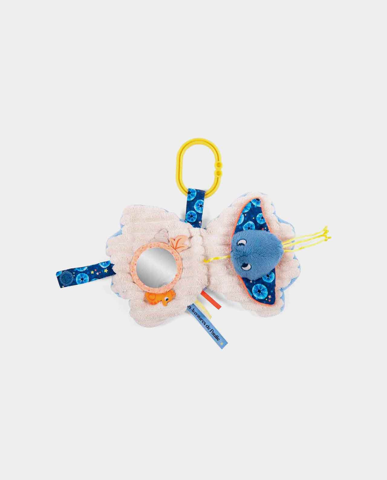 Viene con un espejito en su barriguita y con sonido textil para la estimulación sensorial del bebé.