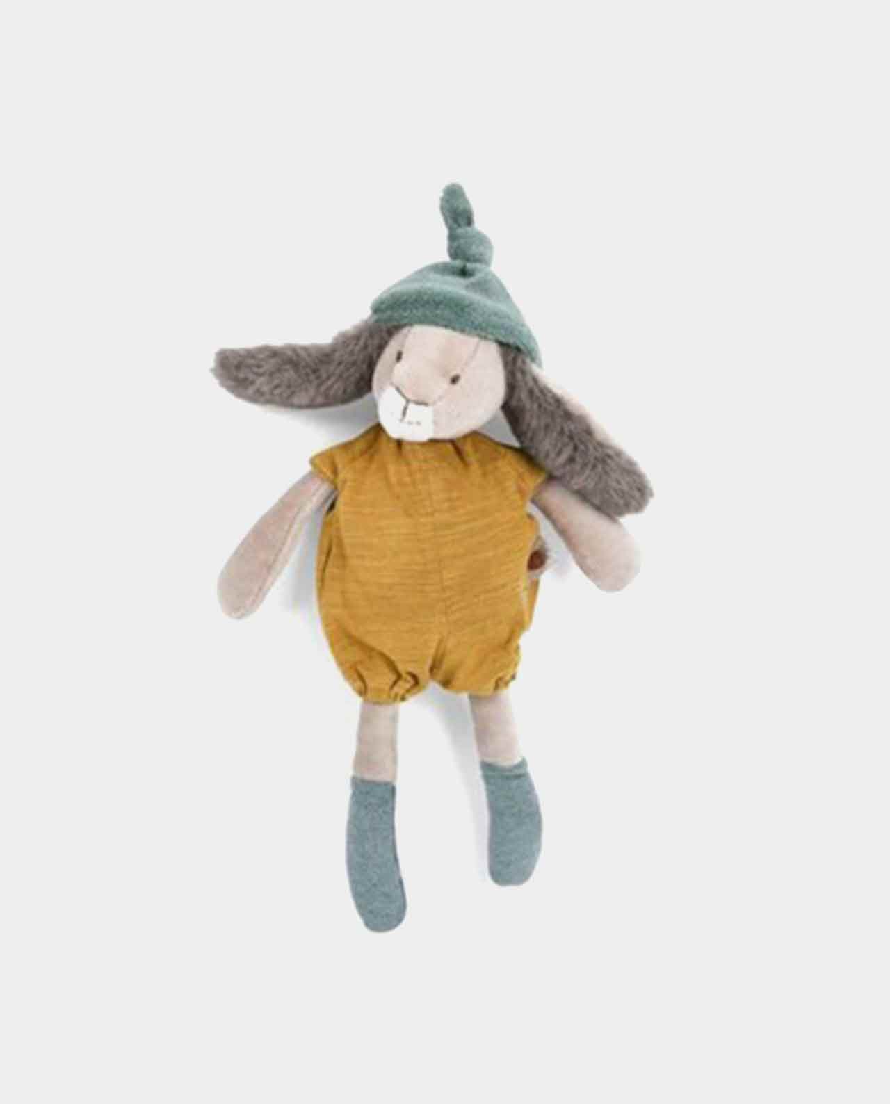 Deja que la dulzura envuelva a tu pequeño con este encantador conejito de peluche, cuyas grandes orejas suaves y el tacto aterciopelado ofrecen una experiencia táctil reconfortante. Vestido con un adorable pelele y un gorro con pompones en las orejas, este conejito no solo es un compañero tierno, sino también una delicia visual.