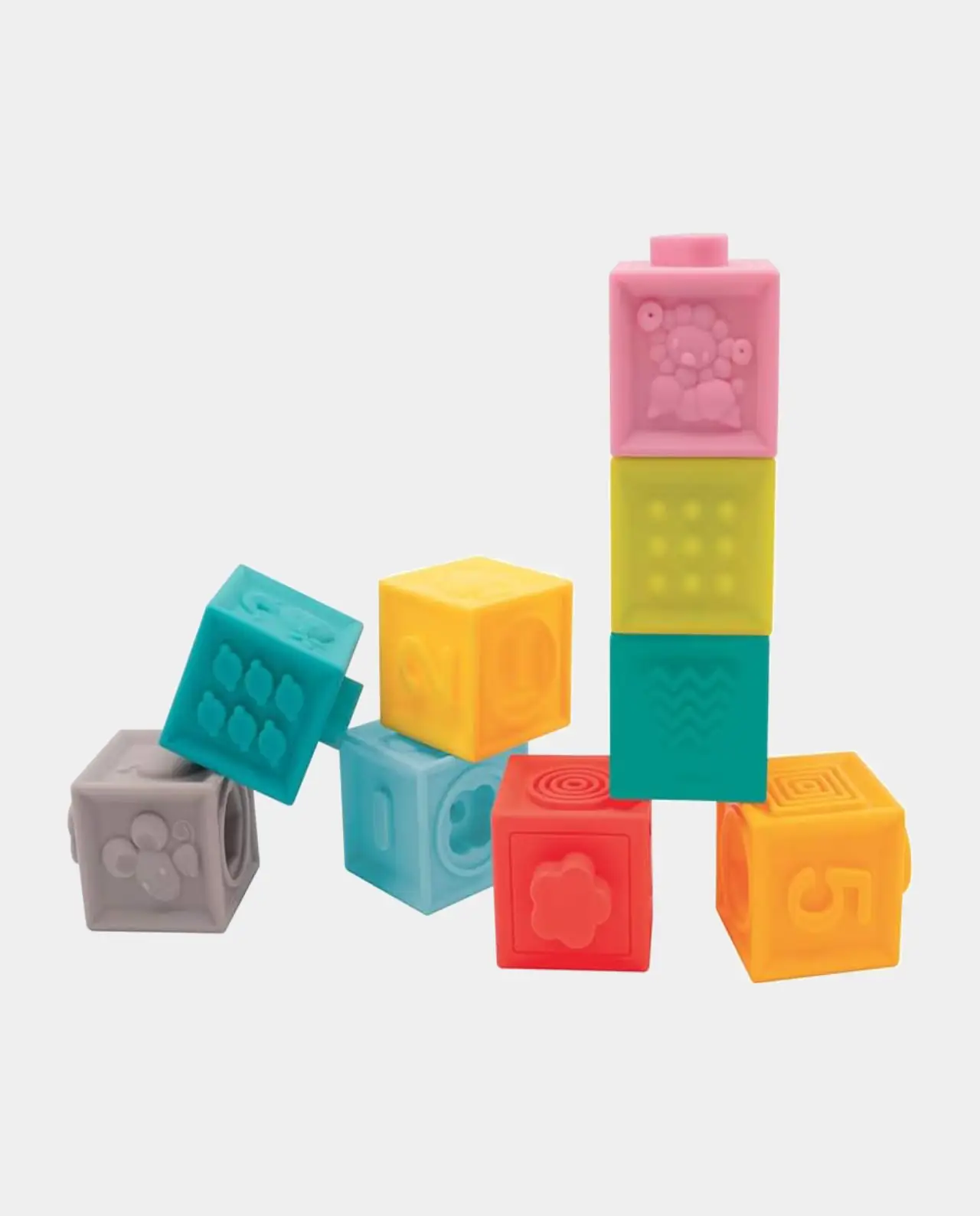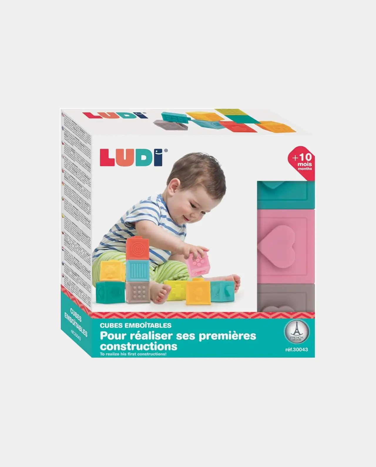 Ideal para manos pequeñas: los cubos son fáciles de tomar en la mano. A su pellizco un pequeño ruido divertido atrae la atención de Bebé. Los niños ejercen así la flexibilidad y la capacidad de agarrar sus dedos, pero también su concentración para el apilamiento. Este primer juego de construcción desarrolla destreza, habilidades motoras, agudeza visual y paciencia.