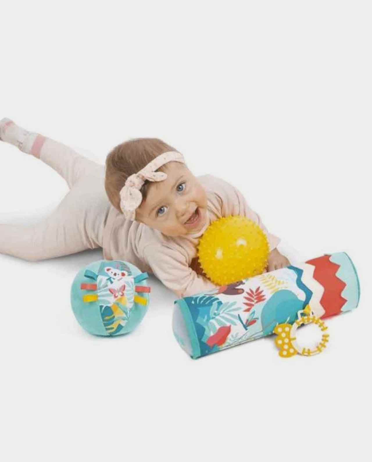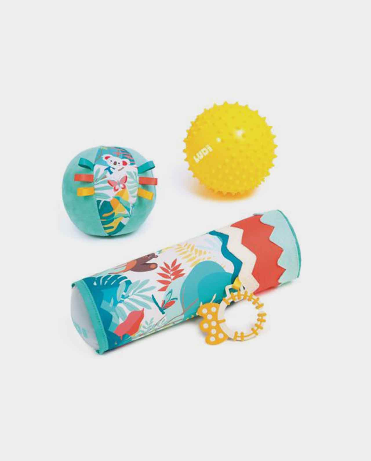 El conjunto de Roller y pelotas de Ludi son juguetes para la estimulación de diversos sentidos y el desarrollo de la motricidad en los más pequeños.
