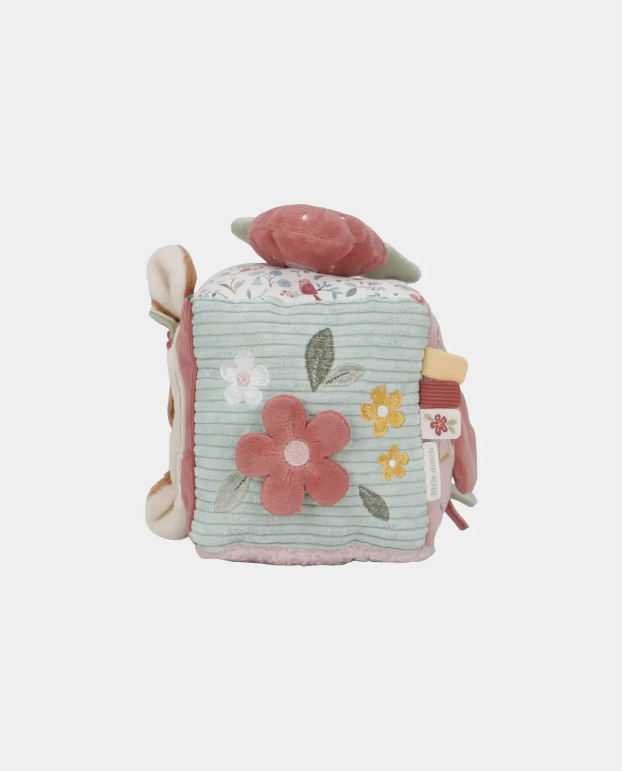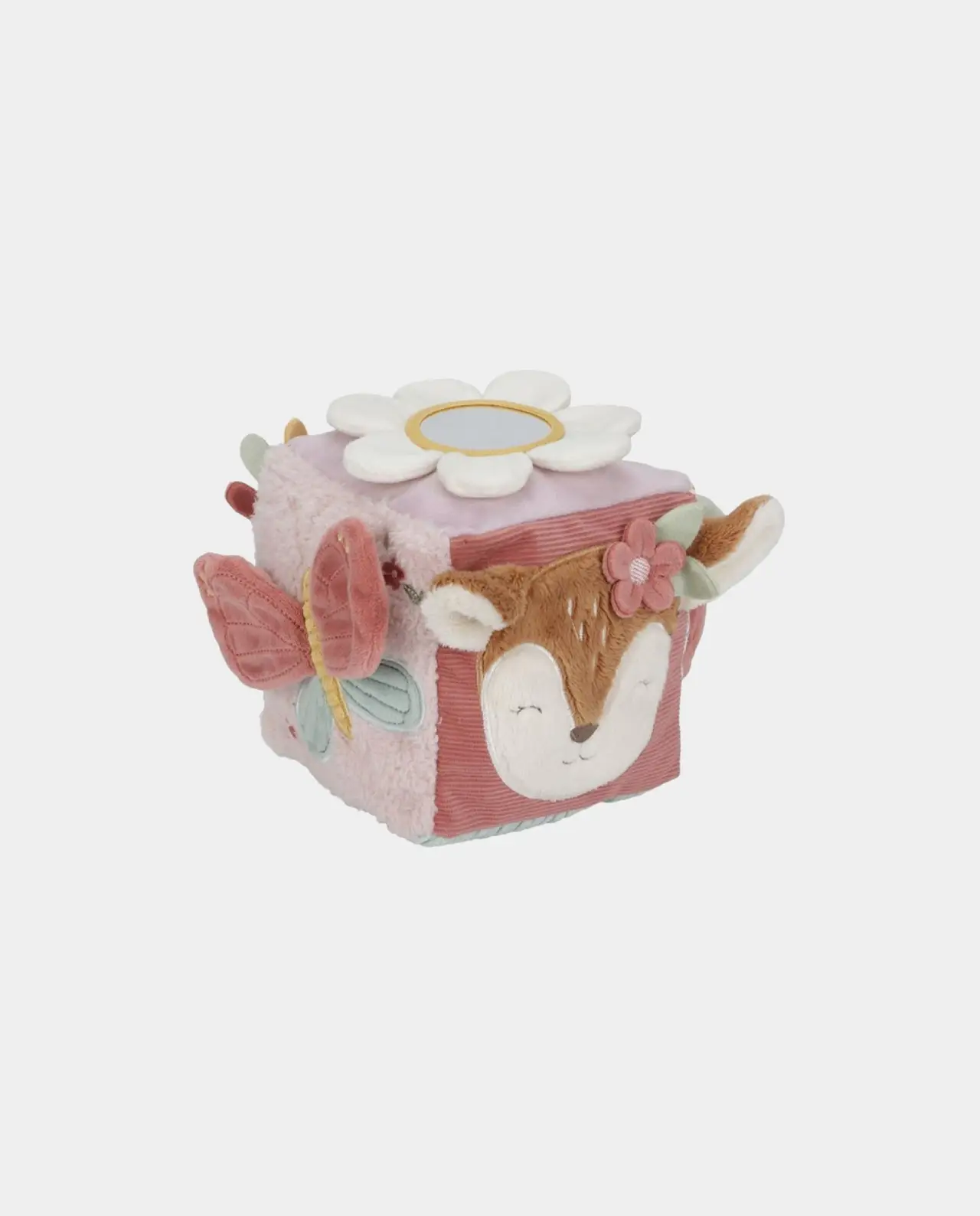 Este suave cubo de actividades de peluche que contiene muchas actividades que estimulan los sentidos del bebé. Hay mucho por descubrir y jugar: varias etiquetas, diferentes texturas, un espejo y un sonajero que suena con cada movimiento.