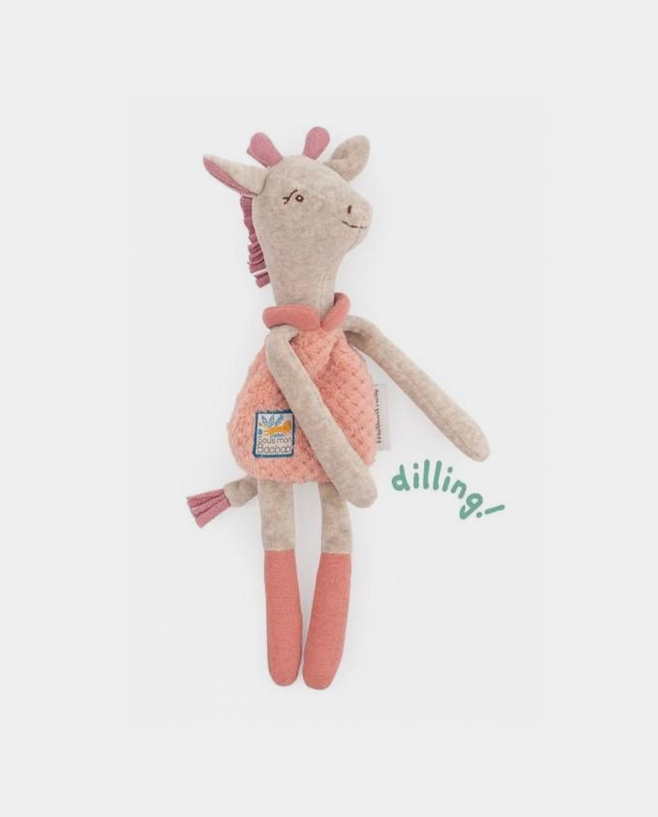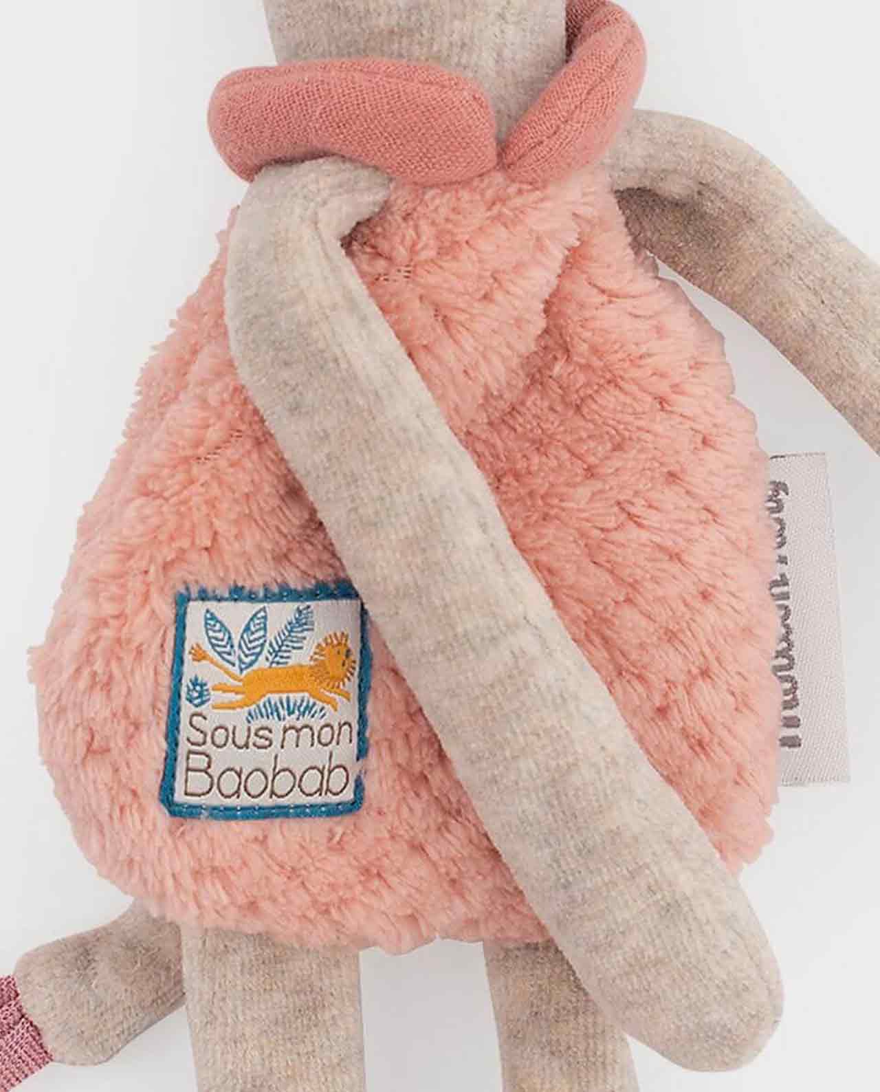 Este adorable jirafa es un doudou y un sonajero con un tacto muy suave y dulce. Tu bebé se divertirá sacudiéndolo y descubrirá con asombro el sonido producido por las pequeñas bolas escondidas en la cabeza del león.
