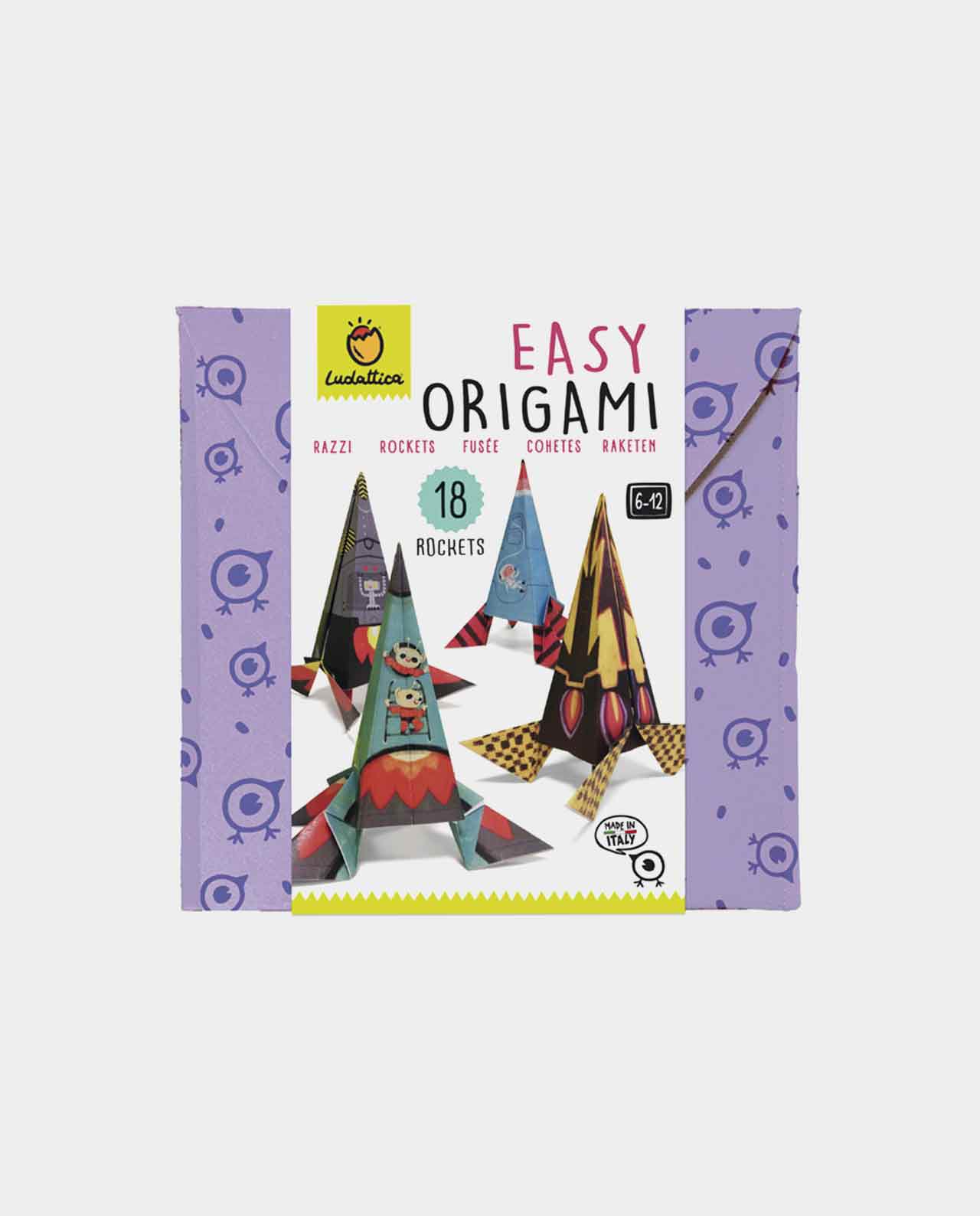 Este set se ha diseñado específicamente para permitirles a los niños más pequeños también ponerse a prueba en el arte del origami. De una manera sencilla y divertida, se pueden construir y decorar 12 originales cohetes. El niño dobla el papel siguiendo las instrucciones ilustradas de la guía y después recorta y pega los elementos típicos de cada creación. Un juego que desarrolla la capacidad de concentración, la motricidad fina y la lógica, pero también la imaginación. El juego se guarda en una suave y colorida bolsa de paño, muy cómoda de abrir y cerrar.