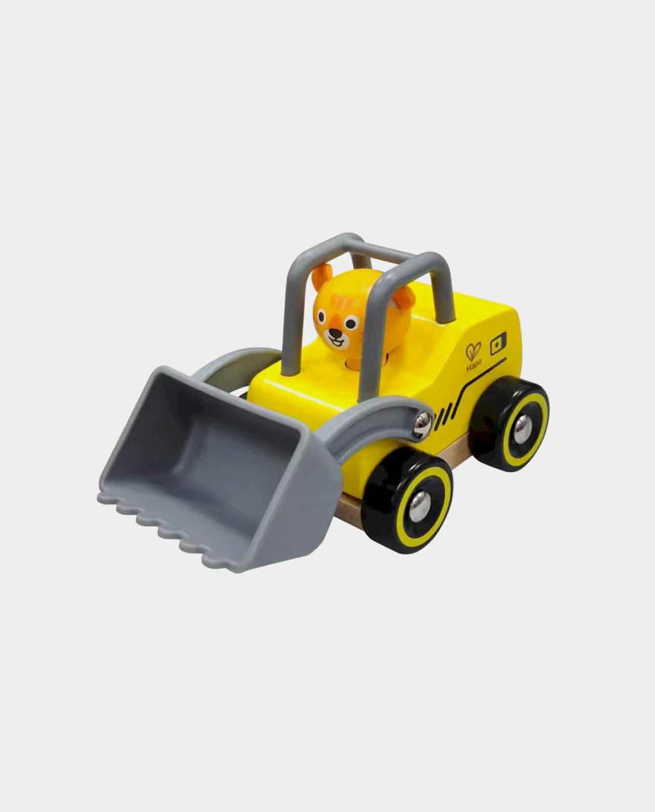 ¡Burrum-burrum! Este vehículo excavadora oso amarillo es una monería, su cabeza y las ruedas puede girar. Un juguete para agarrar, arrastrar y divertirse con él.