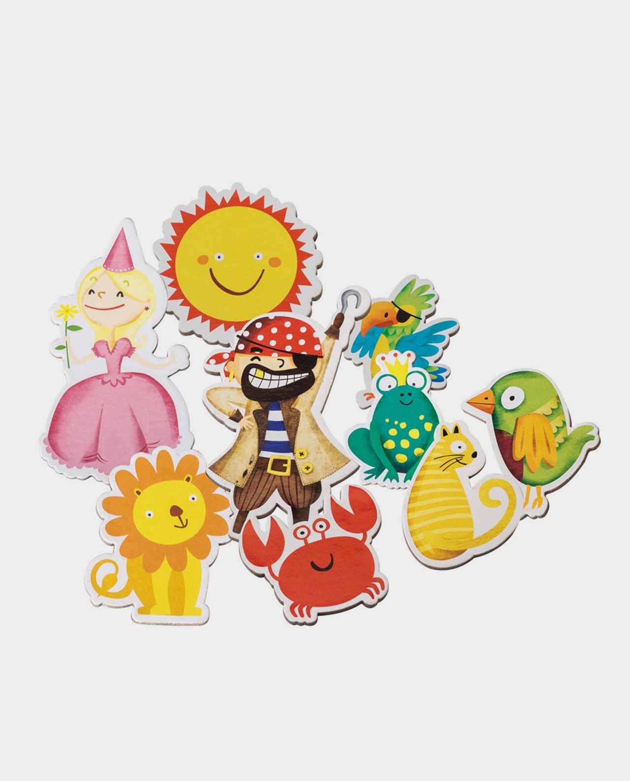 Crea las historias más divertidas con estas figuras magnéticas que incluye, entre otras, un pirata y su barco, una princesa y muchos animales! Puedes pegarlos en cualquier superficie magnética como la nevera o nuestra pizarra magnética. Estas figuras vienen guardadas en una caja de cartón forrada, que impedirá que se pierdan.