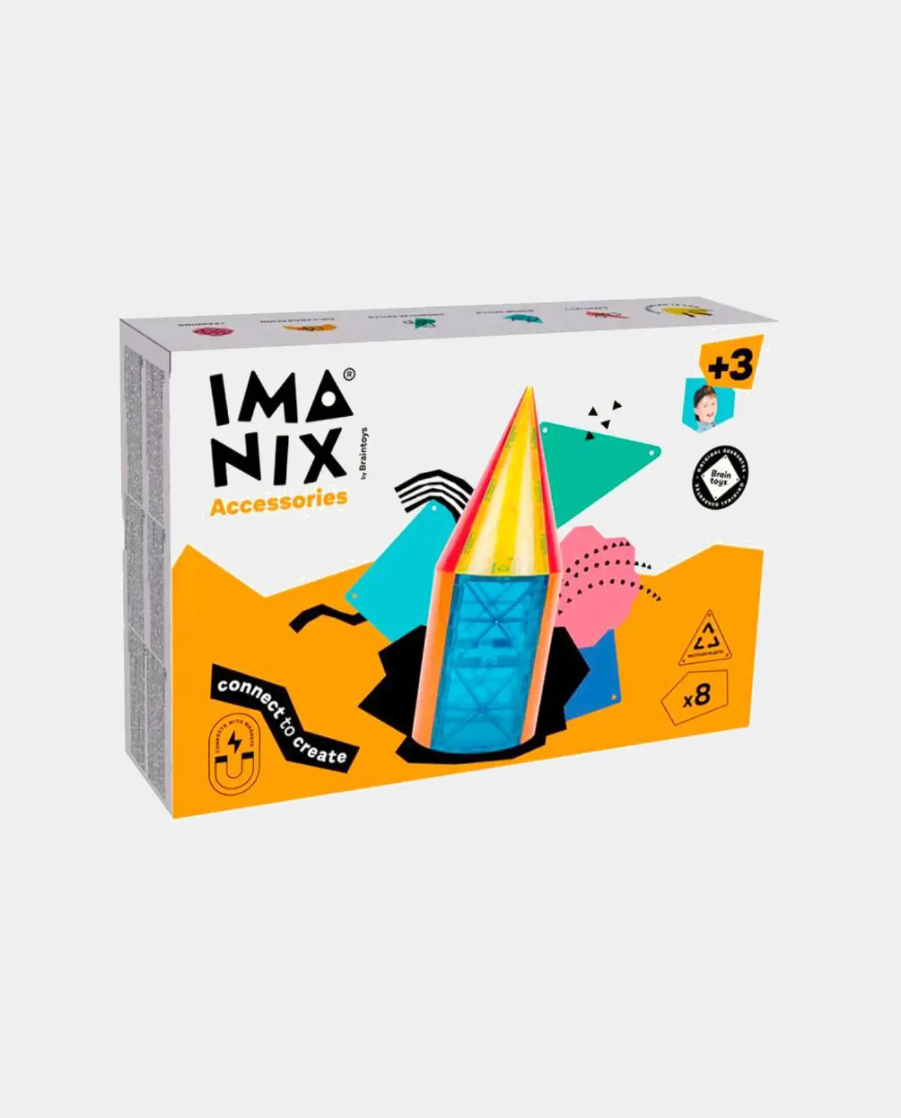 Este modelo Imanix Curved ayuda a construir figuras curvas gracias a los 4 triángulos y 4 rectángulos cónicos que incluye.