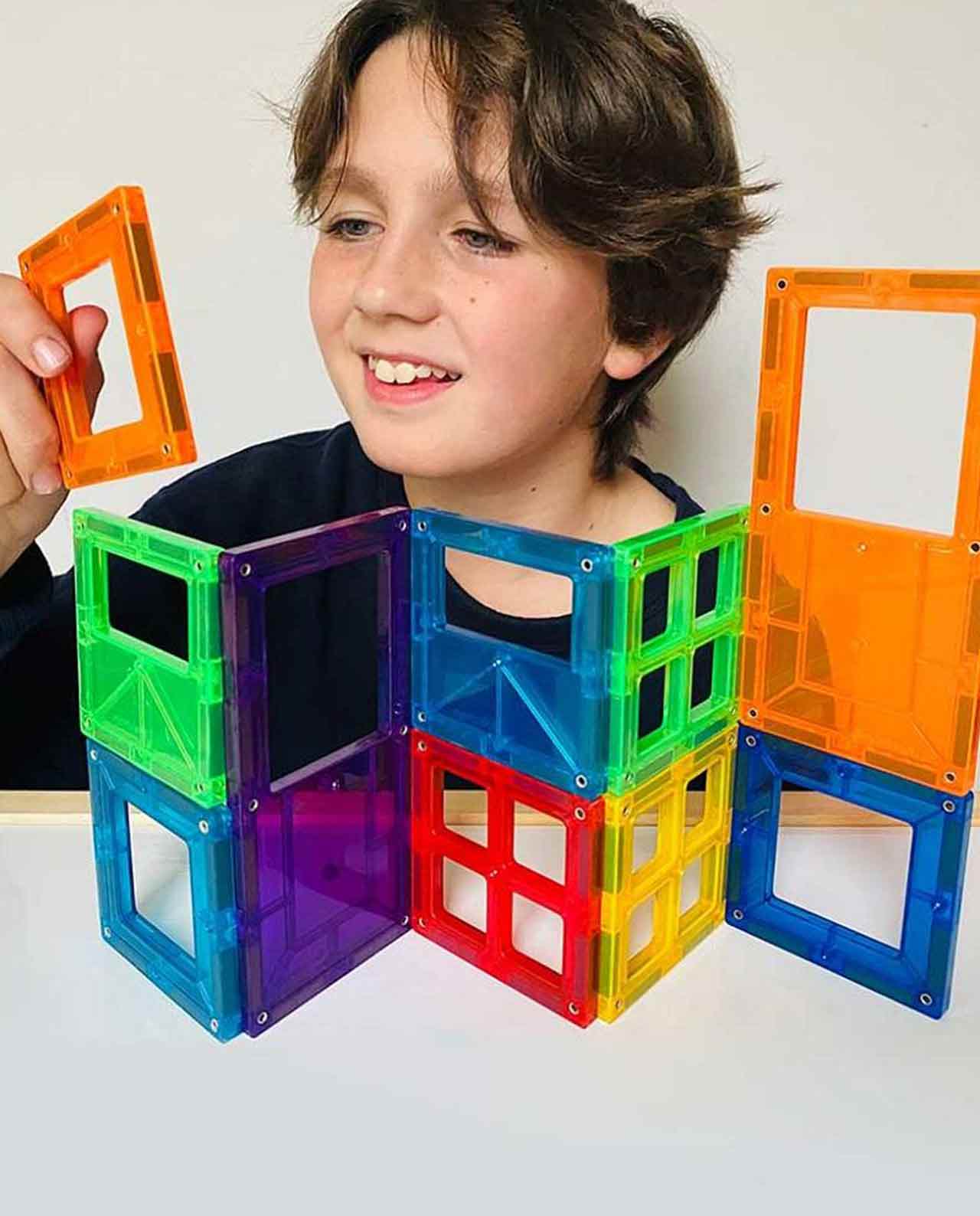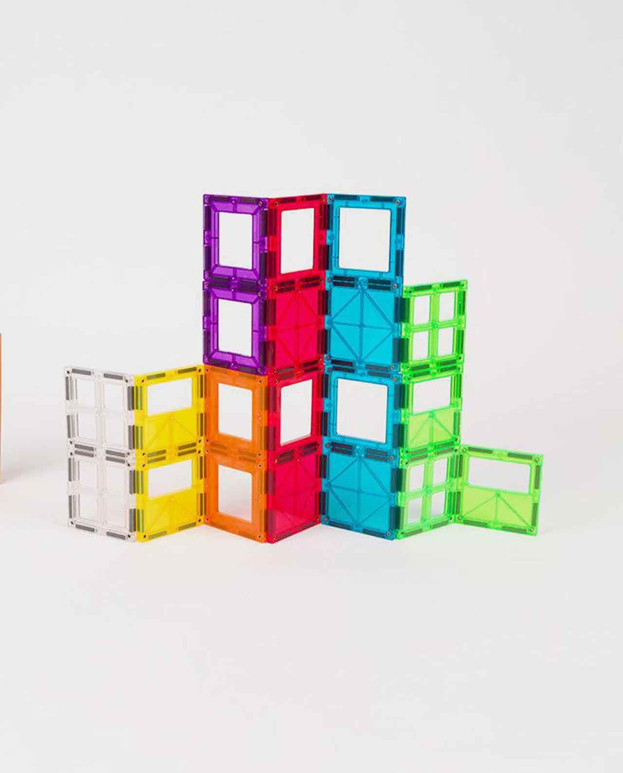 Descubre un sencillo sistema de construcción mediante conexión entre piezas con distintas formas geométricas sólidas y colores translúcidos. Con ellas podrás crear fantásticas estructuras en 2D y en 3D, ¡y asegurarte horas de diversión!