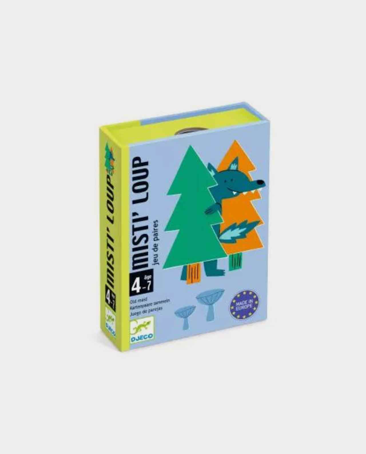 En Misti’Loup – Jeu de Paires, tienes que deshacerte de todas tus cartas haciendo coincidir imágenes, ¡pero ten cuidado de no atrapar al lobo malo! Al final de la partida, el jugador que tenga esta carta en la mano habrá perdido.