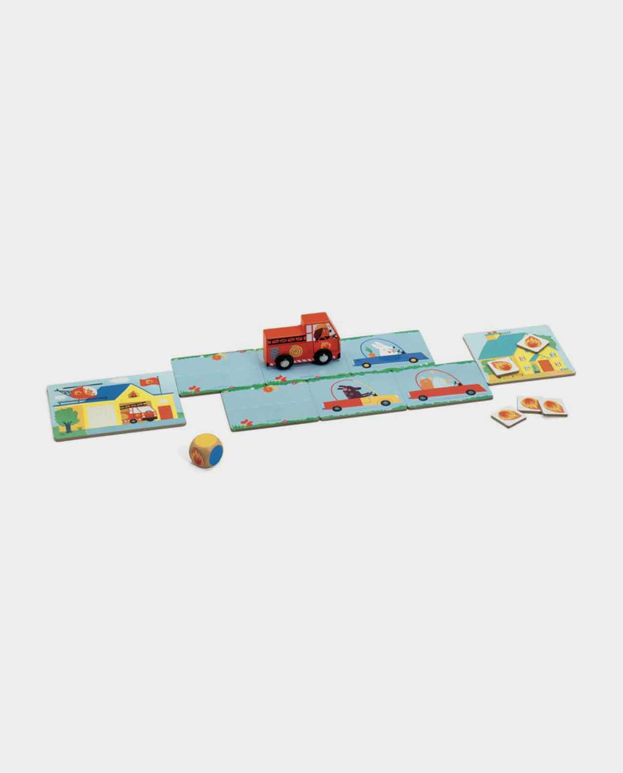 Juego de mesa cooperativo de Djeco en donde todos ganan o pierden juntos. ¿Conseguiréis llegar a tiempo al incendio?