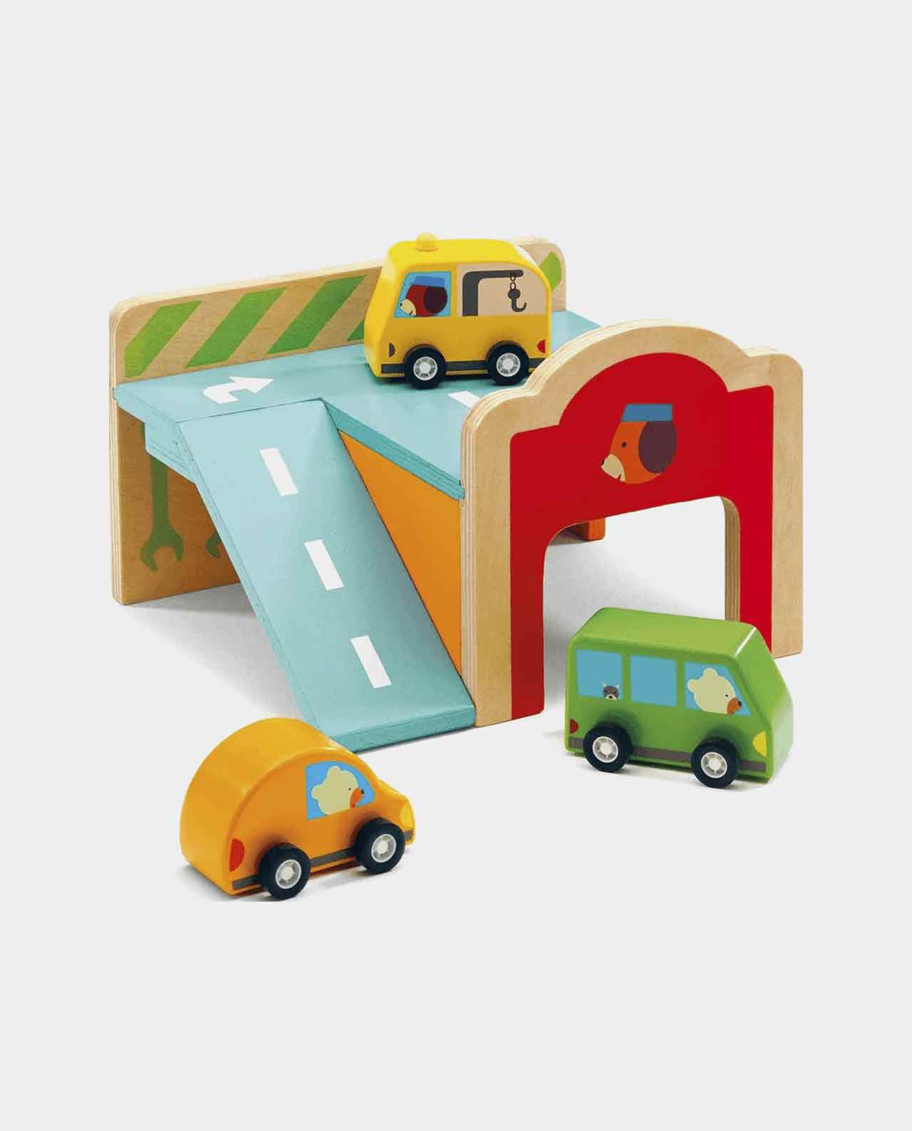Este garaje de Djeco es un hermoso juego de madera maciza para jugar con vehículos. Conduce uno de los tres vehículos hacia arriba y hacia abajo por la rampa hasta el garaje. Este garaje es compacto, y tiene el tamaño ideal para jugar en espacios pequeños, con sus ruedas de goma, no estropea las superficies y es silencioso. Ayuda a desarrollar la motricidad, el desarrollo cognitivo, la imaginación y la narración.
