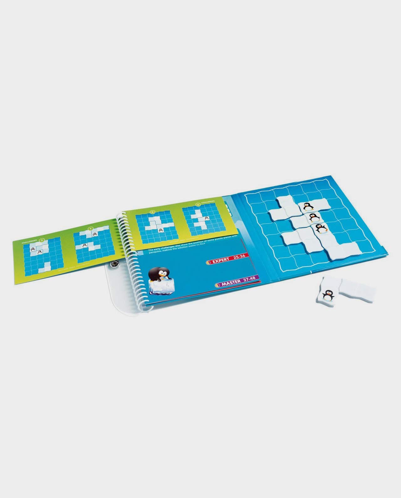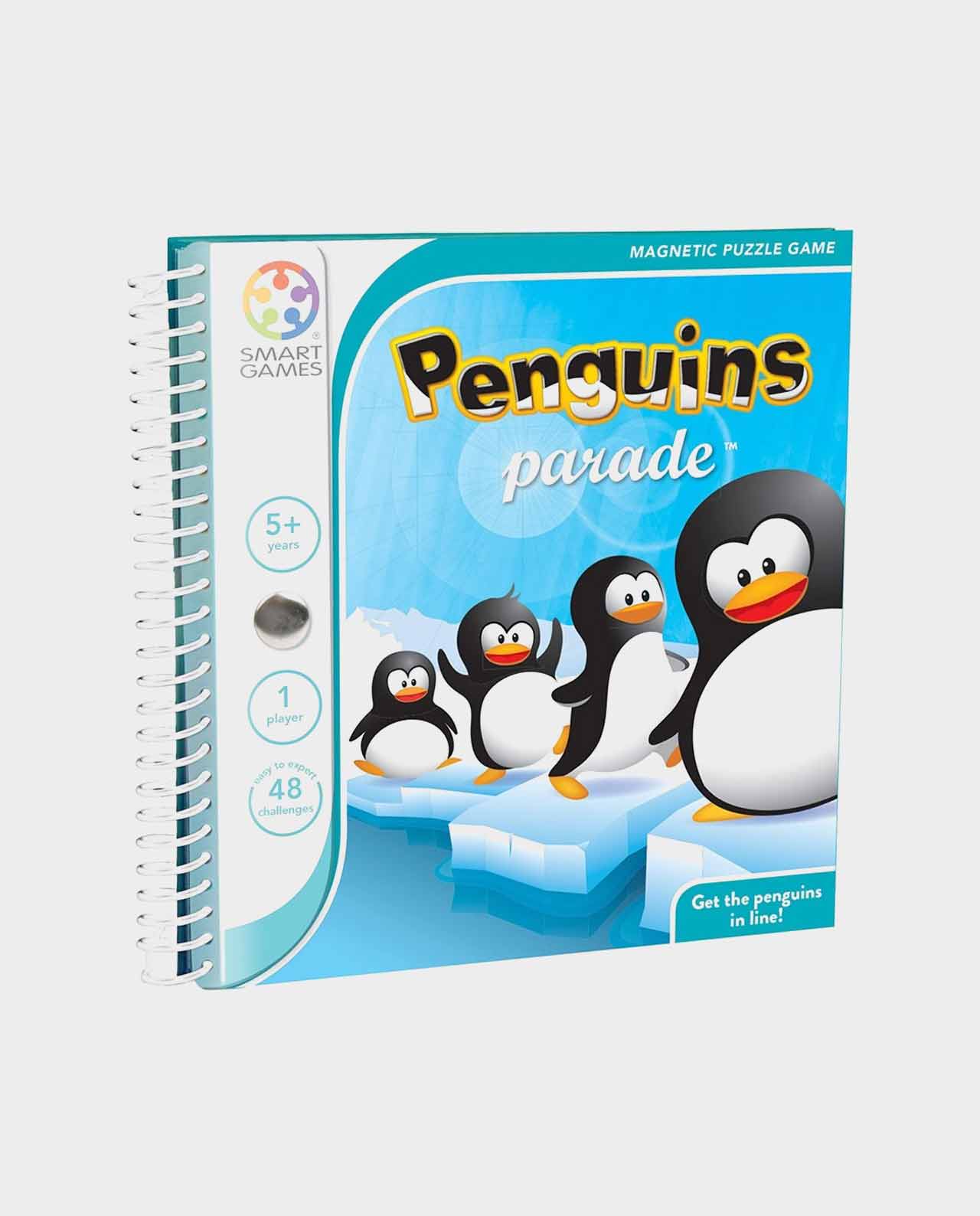 Penguins Parade es la nueva aventura en el Polo Sur. Sólo tienes que conseguir que estos simpáticos pingüinos formen una fila, pero no te lo van a poner tan fácil. No puede existir ningún espacio entre ellos y no se pueden colocar boca abajo. Un juego de ingenio con piezas magnéticas y en forma de cuaderno que es perfecto para llevar de viaje.