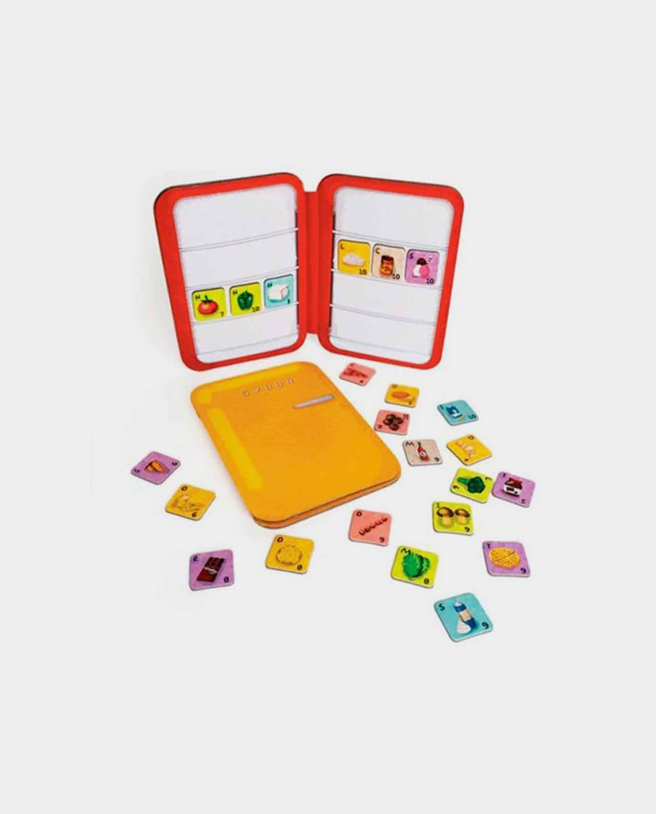Un juego emocionante para 2 a 4 jugadores que desarrolla la observación, el pensamiento estratégico… ¡y el apetito! Incluye 4 tableros magnéticos para jugadores en la nevera, 64 fichas magnéticas de comida, una tarjeta de inventario y una tarjeta de comidas