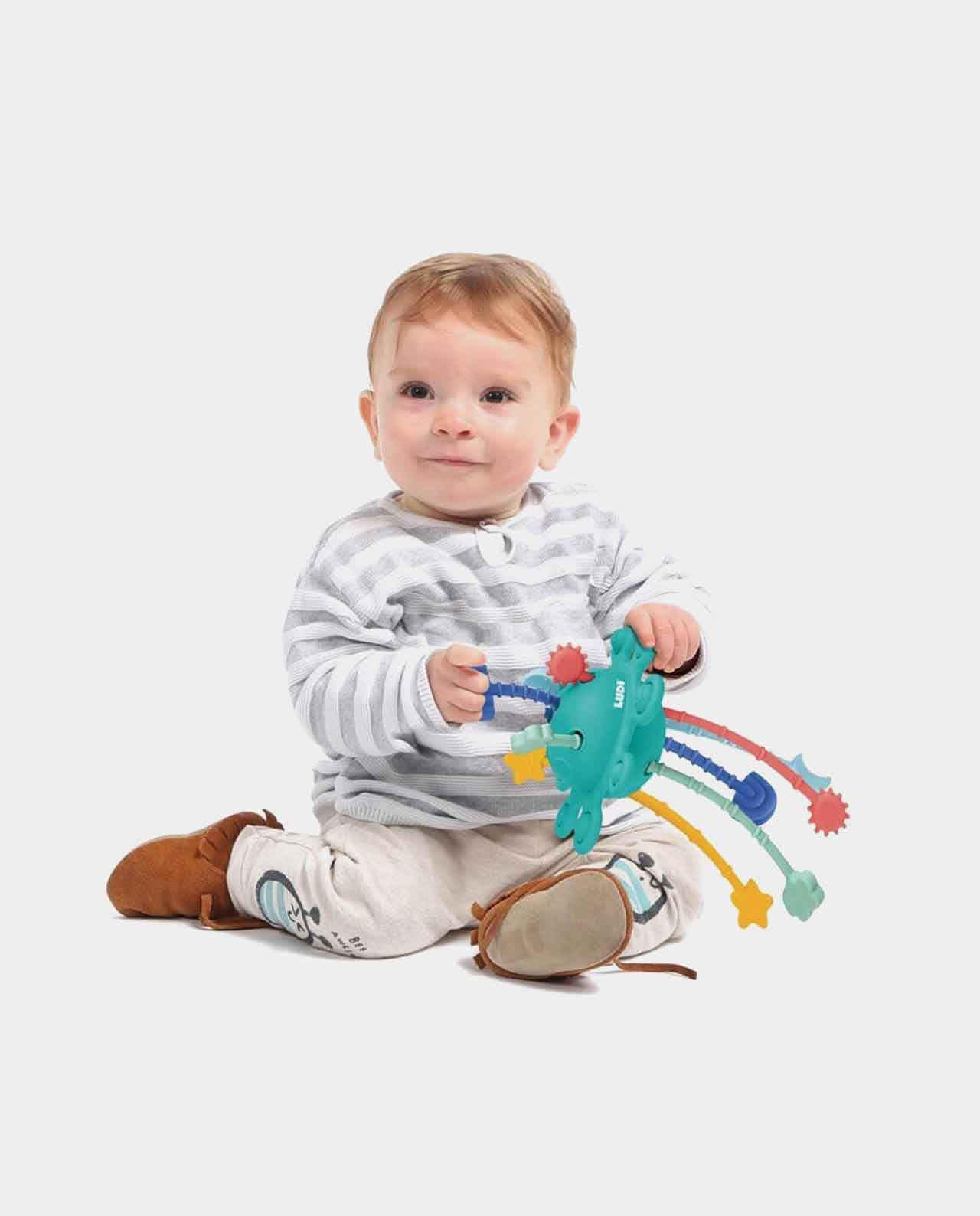 Un pequeño planeta en las manos de tu bebé para disfrutar de un rato de juego sensorial gracias a sus tiras texturizadas y sus botones de presión.