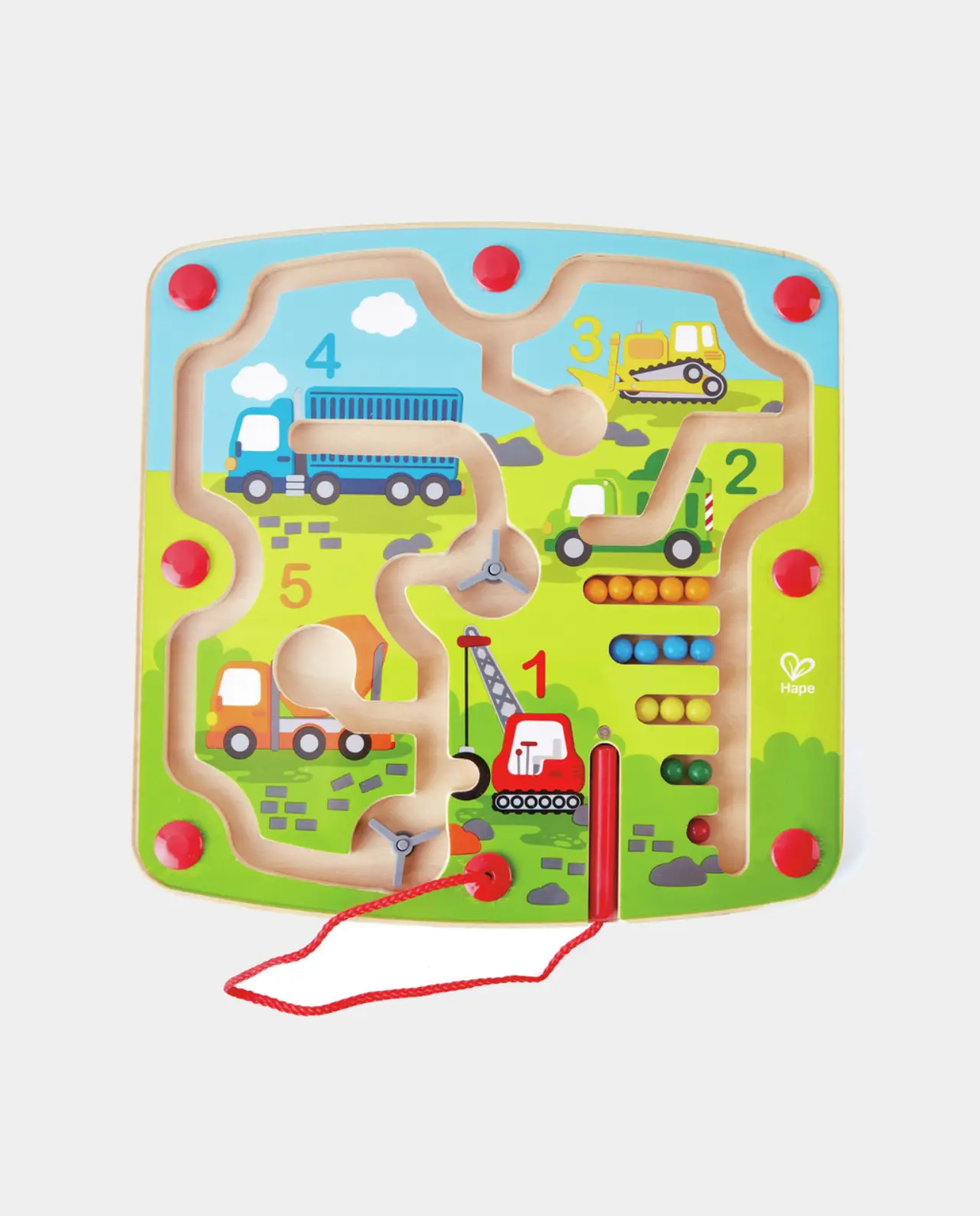 Este fantástico laberinto magnético de construcción y números es un modo divertido de pasear por las obras y aprender sobre los vehículos de construcción, los colores y a contar. Con este laberinto, ¡los peques podrán inclinar el tablero o usar la varita para guiar las bolas por los pasadizos del laberinto, sus esquinas y puertas giratorias!