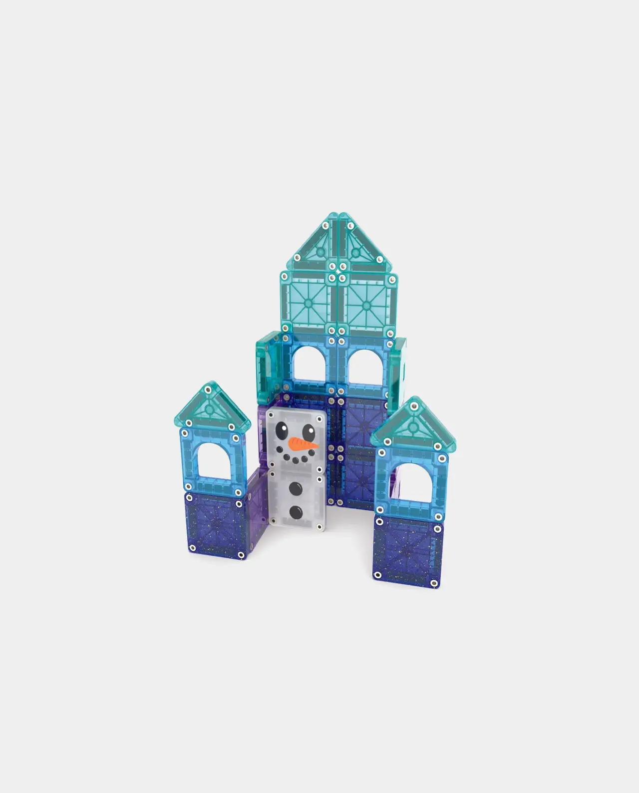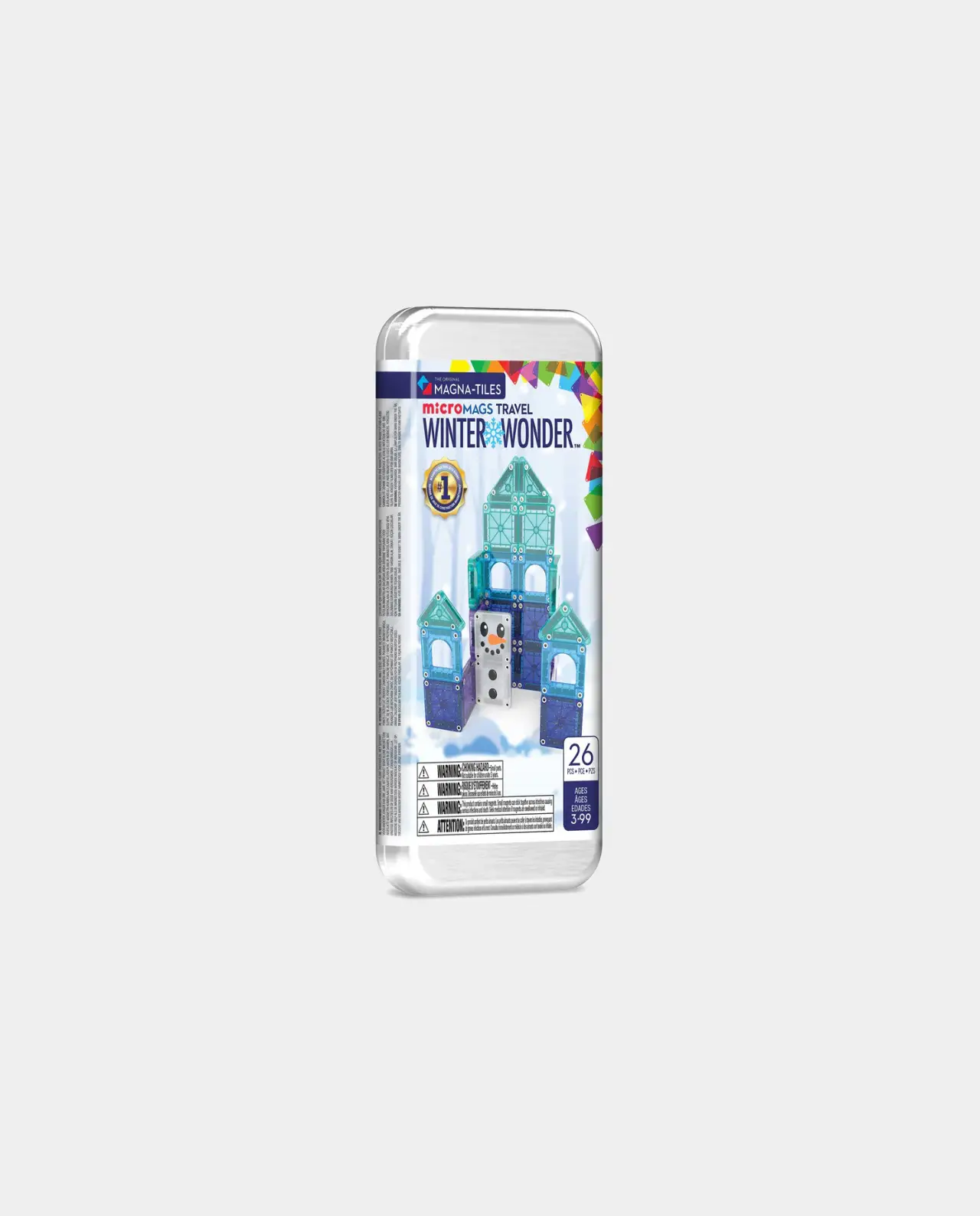 El set Winter Wonder Travel es una edición limitada diseñada para acompañar a los más pequeños en sus aventuras, ¡donde sea que vayan! Con 26 piezas magnéticas en tonos invernales brillantes, este set compacto permite construir castillos helados, muñecos de nieve y escenas nevadas mientras se estimulan la creatividad y la motricidad fina.