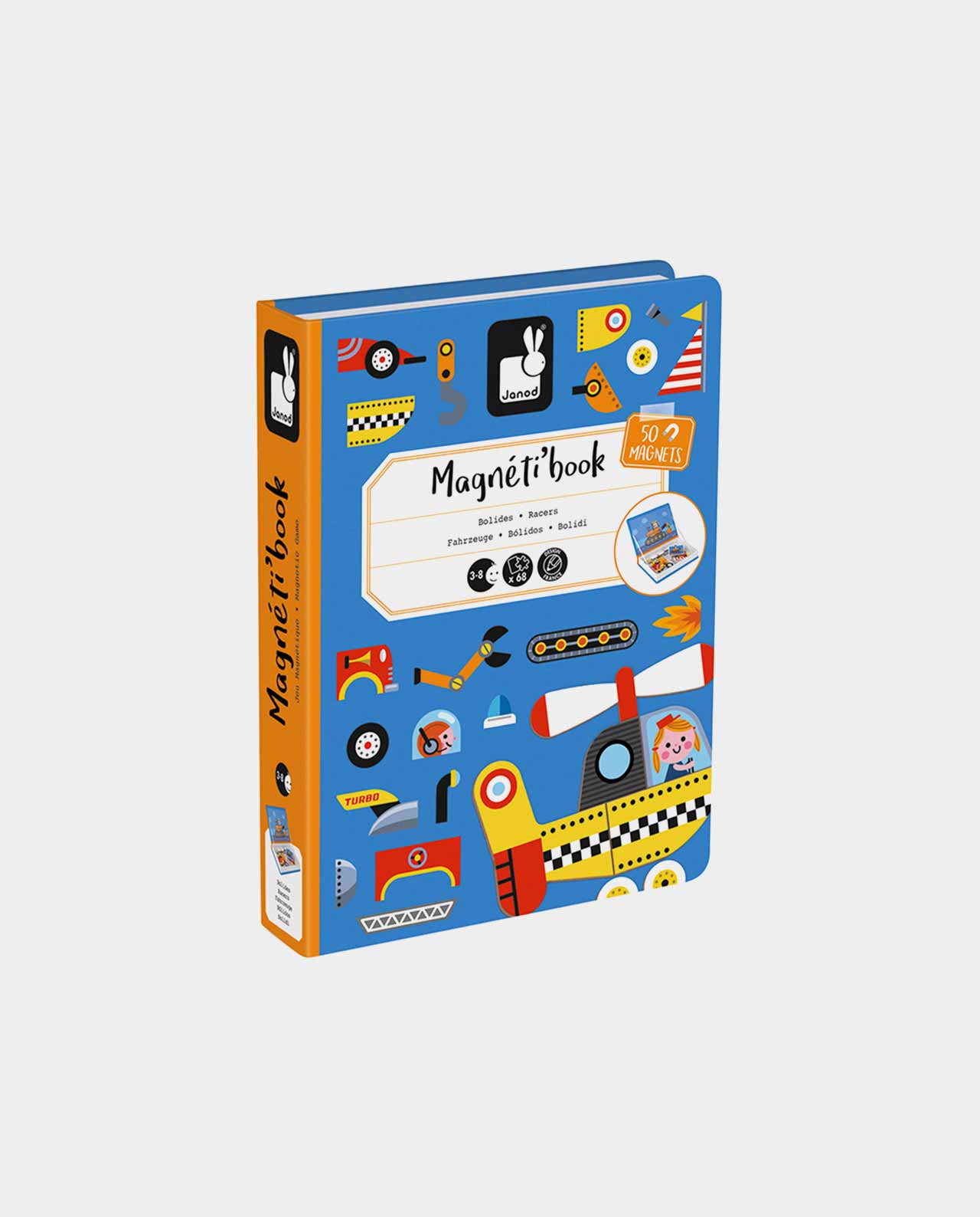 · Contiene 50 imanes y 18 tarjetas de vehículos.