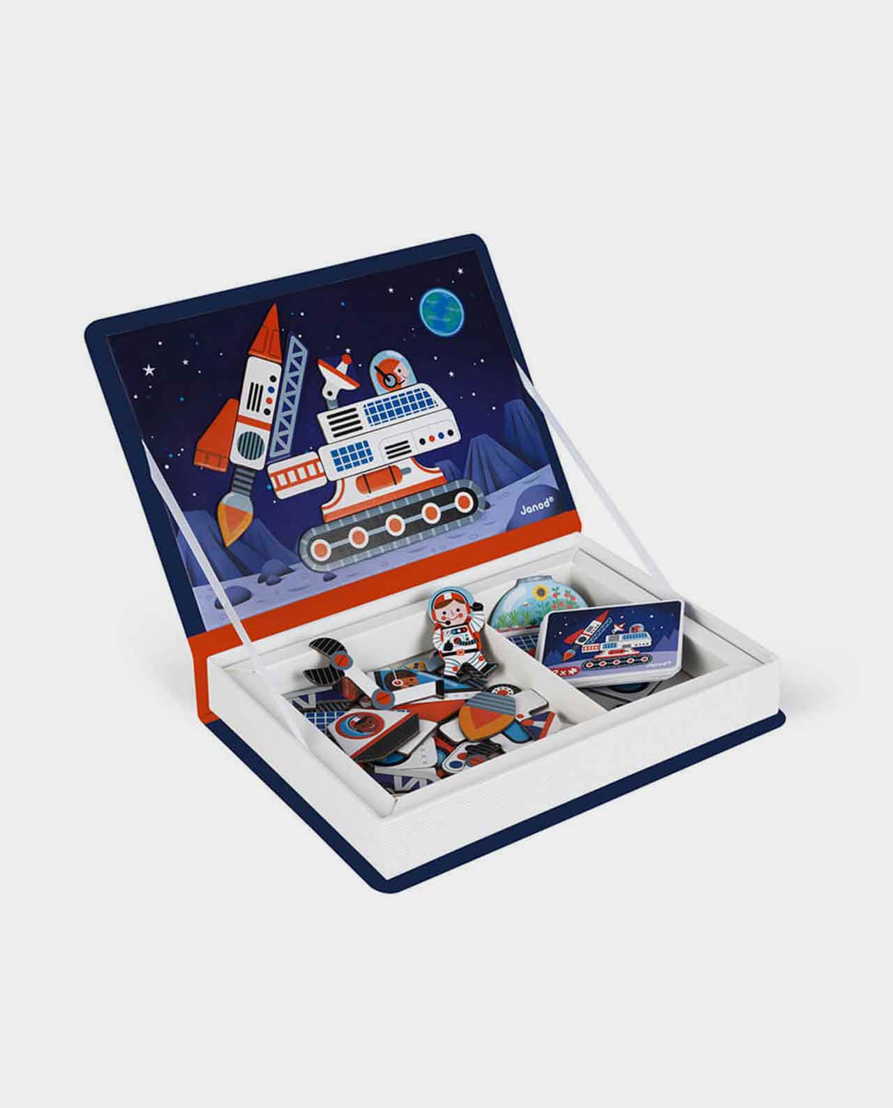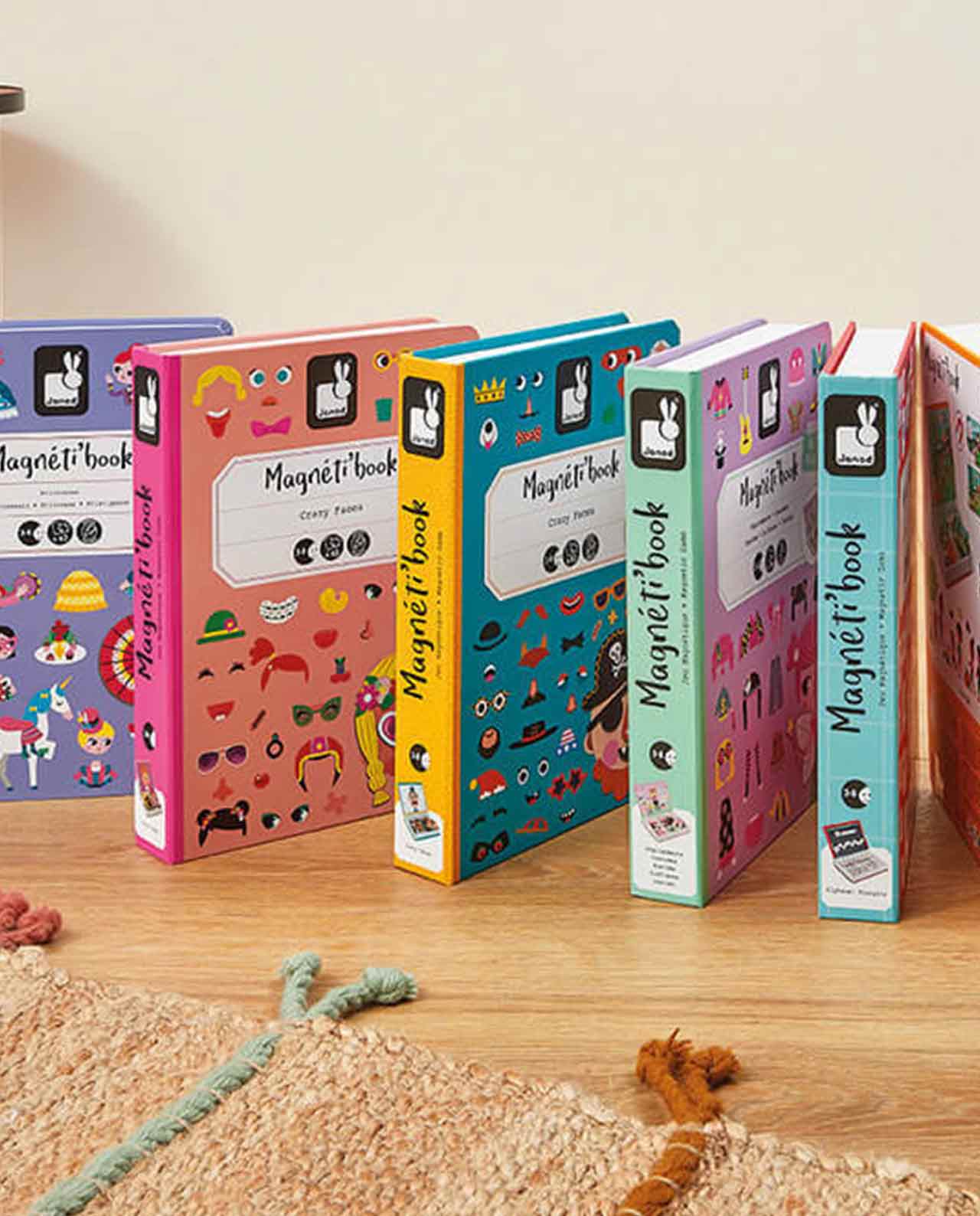 ¡Todo un zoológico en una cajita! El Magneti’book animales contiene 30 imanes para dar vida a un montón de animales. Es superpráctico gracias a su formato de libro: el niño solo tiene que abrirlo para encontrar los imanes, las 10 tarjetas de ejemplo y la cara magnética en la que se ponen los imanes. El objetivo del juego es simple: recomponer en el soporte magnético el animal dibujado en la tarjeta de ejemplo o dejar volar su imaginación para crear animales locos y divertidos porque cada pieza es compatible con las demás. Entre los animales que se pueden reconstruir están el caballo, el rinoceronte, la jirafa, la cebra, el oso, la oveja…