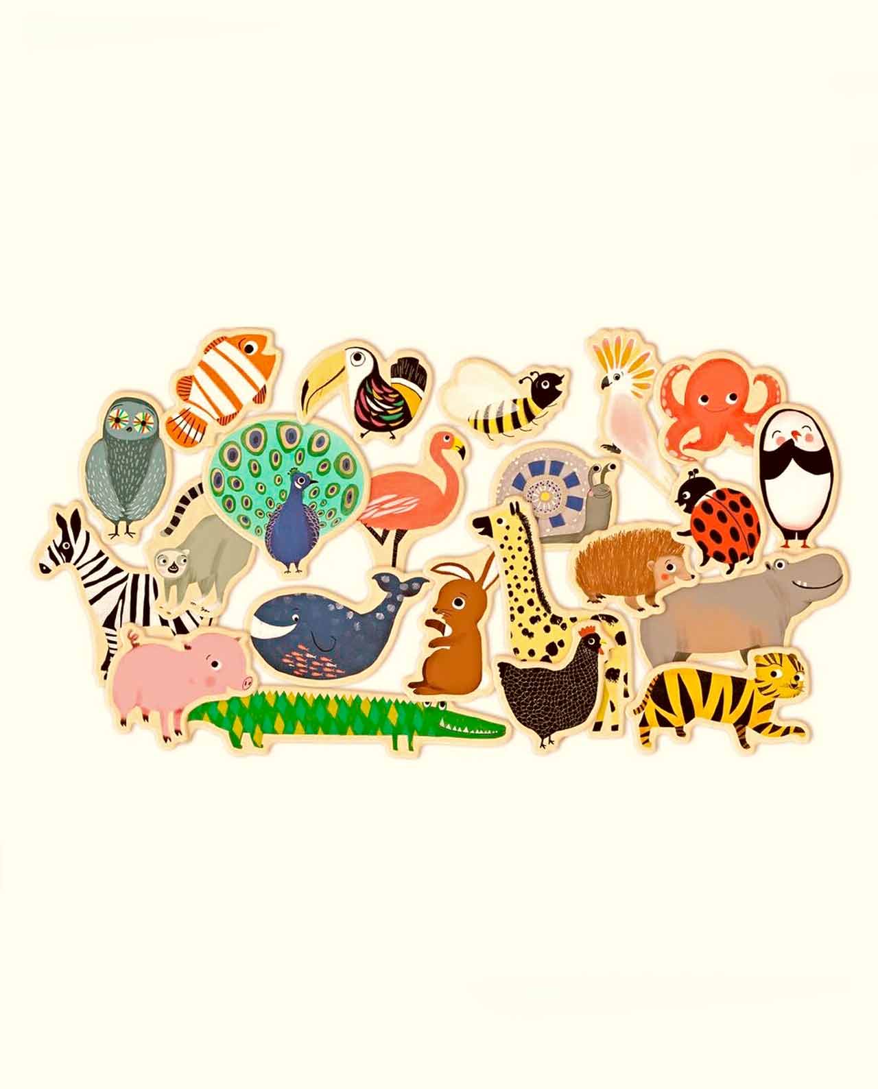 Este divertido juego de 36 imanes de madera de Djeco es el regalo perfecto para el pequeño amante de los animales.