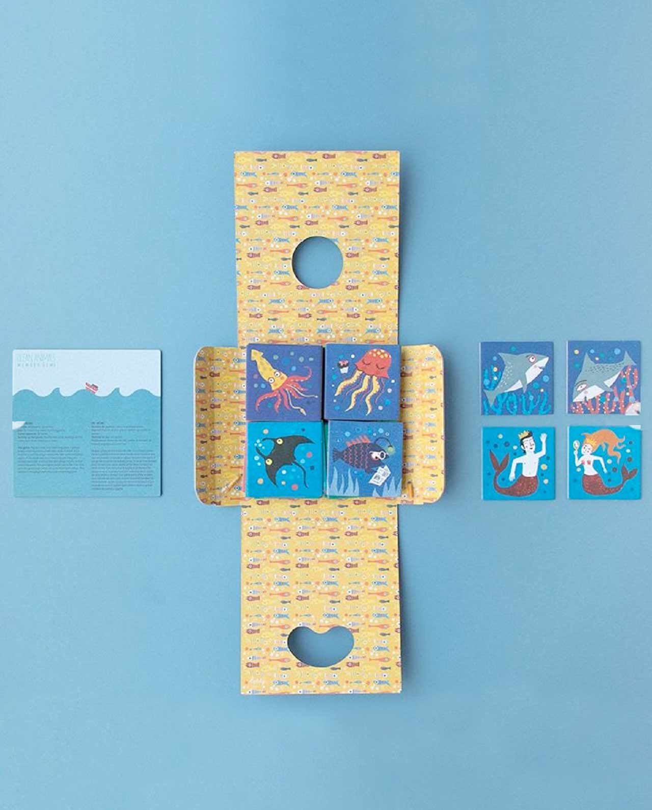 Ballenas, delfines, tiburones, peces abisales y así hasta 16 parejas. Un juego de memoria para pequeños y mayores, quien consiga formar más parejas será el ganador.