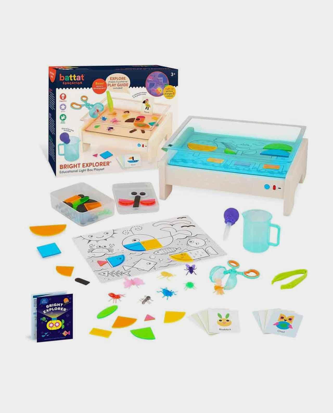 ¡Mira cómo brilla el Bright Explorer de Battat Education y deja que fluya la diversión! Esta caja de luz ilumina el tiempo de juego con infinitas oportunidades de aprendizaje, diversión práctica y colores atractivos: ¡cambia la superficie iluminada entre 5 tonos diferentes!