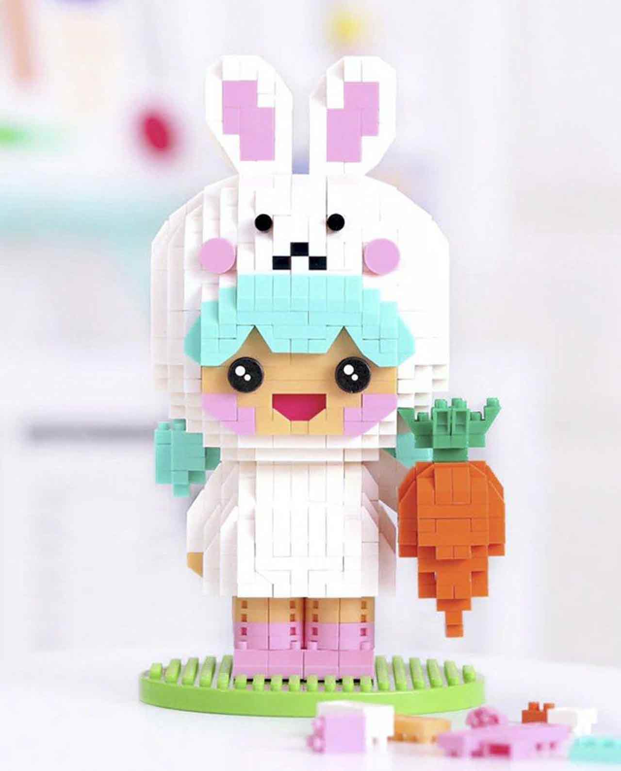 Este set incluye 851 piezas pequeñas y una hoja de instrucciones para que puedas construir a esta adorable conejita paso a paso.