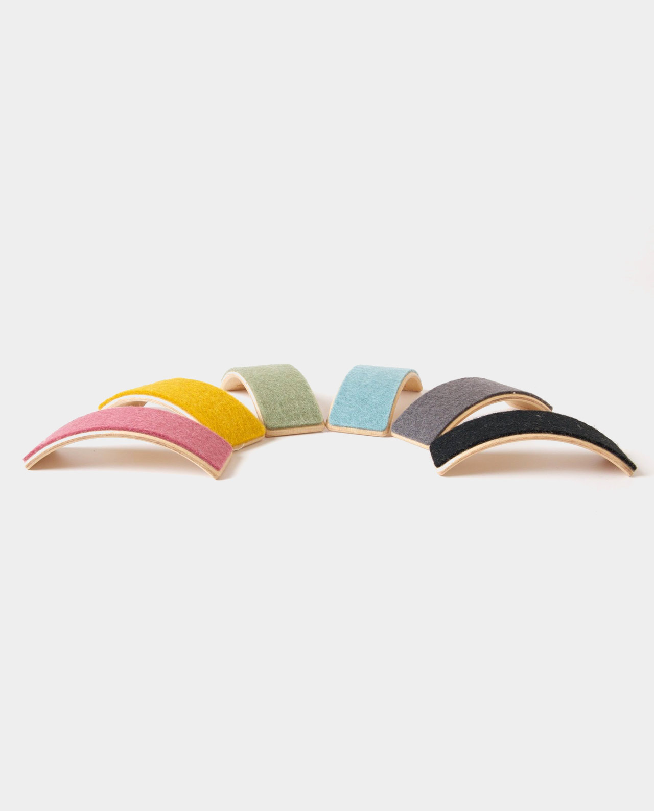 Las mini wobbel son de madera lacada transparente y con fieltro sorpresa de colores variados. Vienen en una bolsita de lino. Ideales como un pequeño regalo.