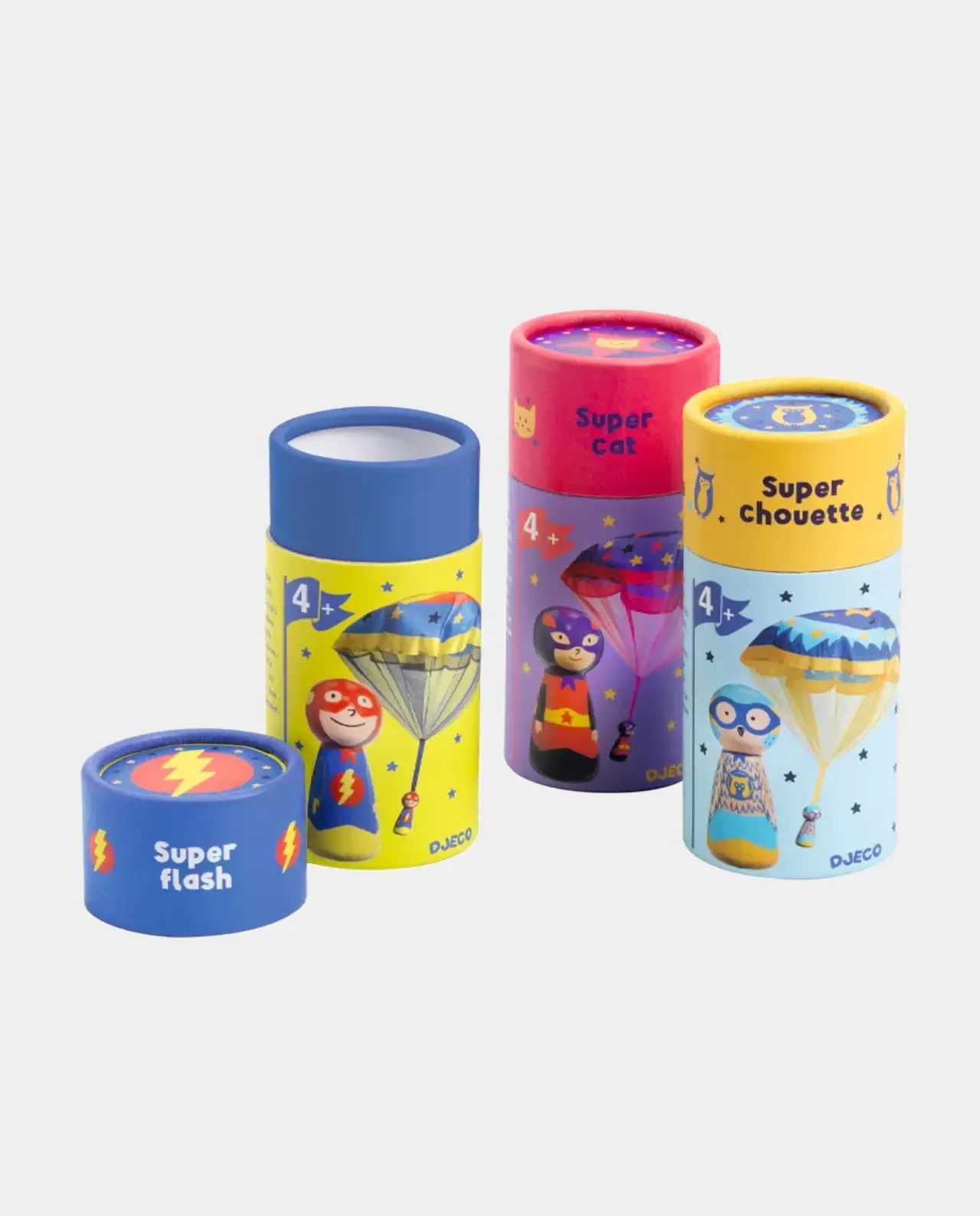 Paracaídas con superhéroe de madera, modelo Super Flash.