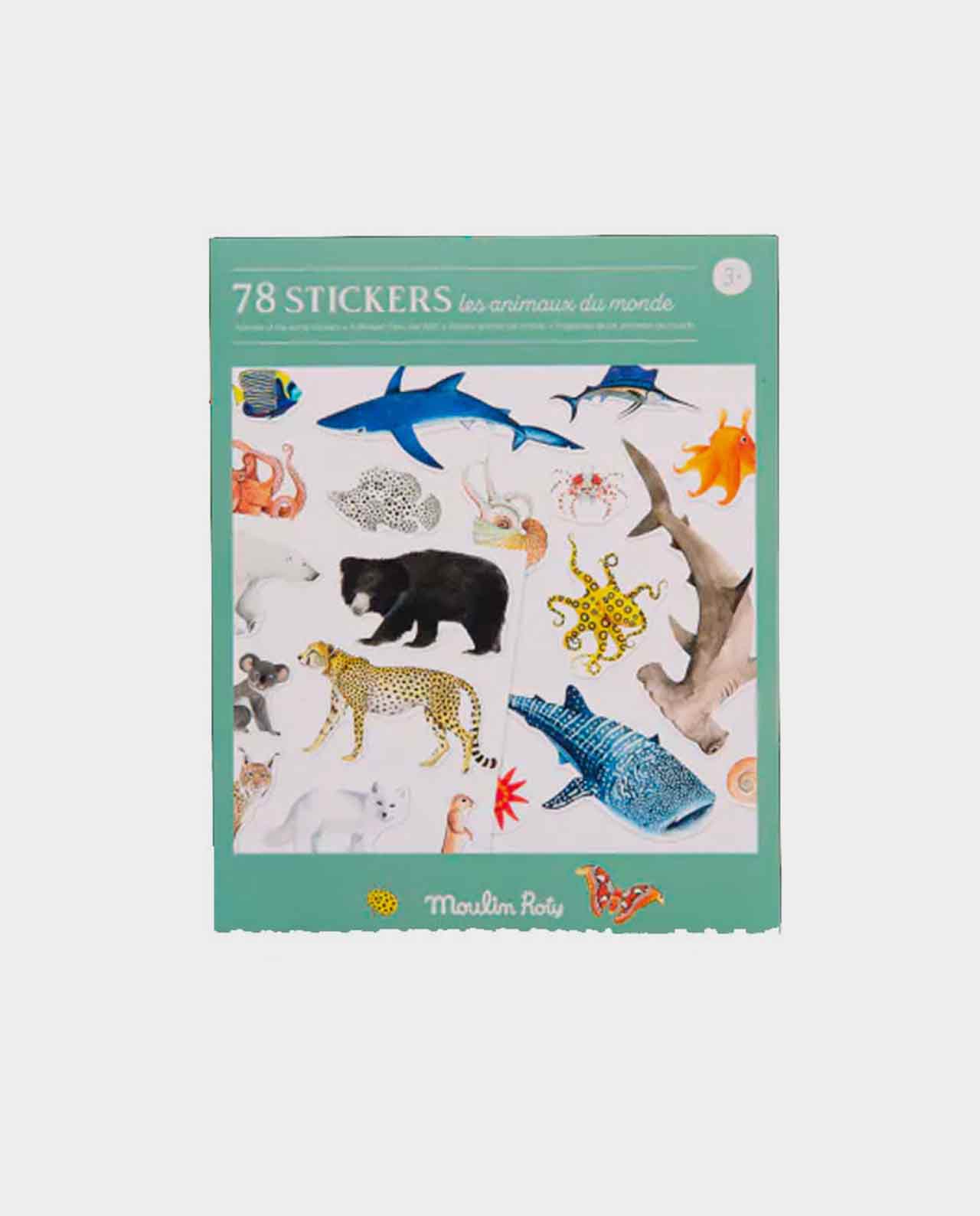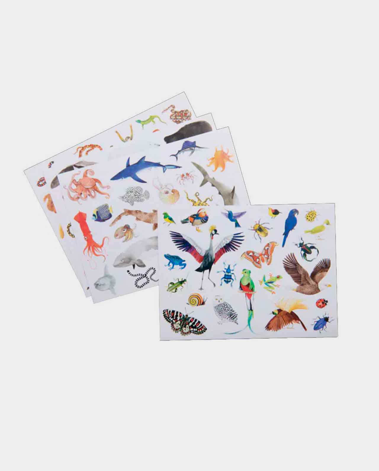 Cajita con forma de animal que incluye 78 pegatinas reutilizables para peques a partir de 18 meses.