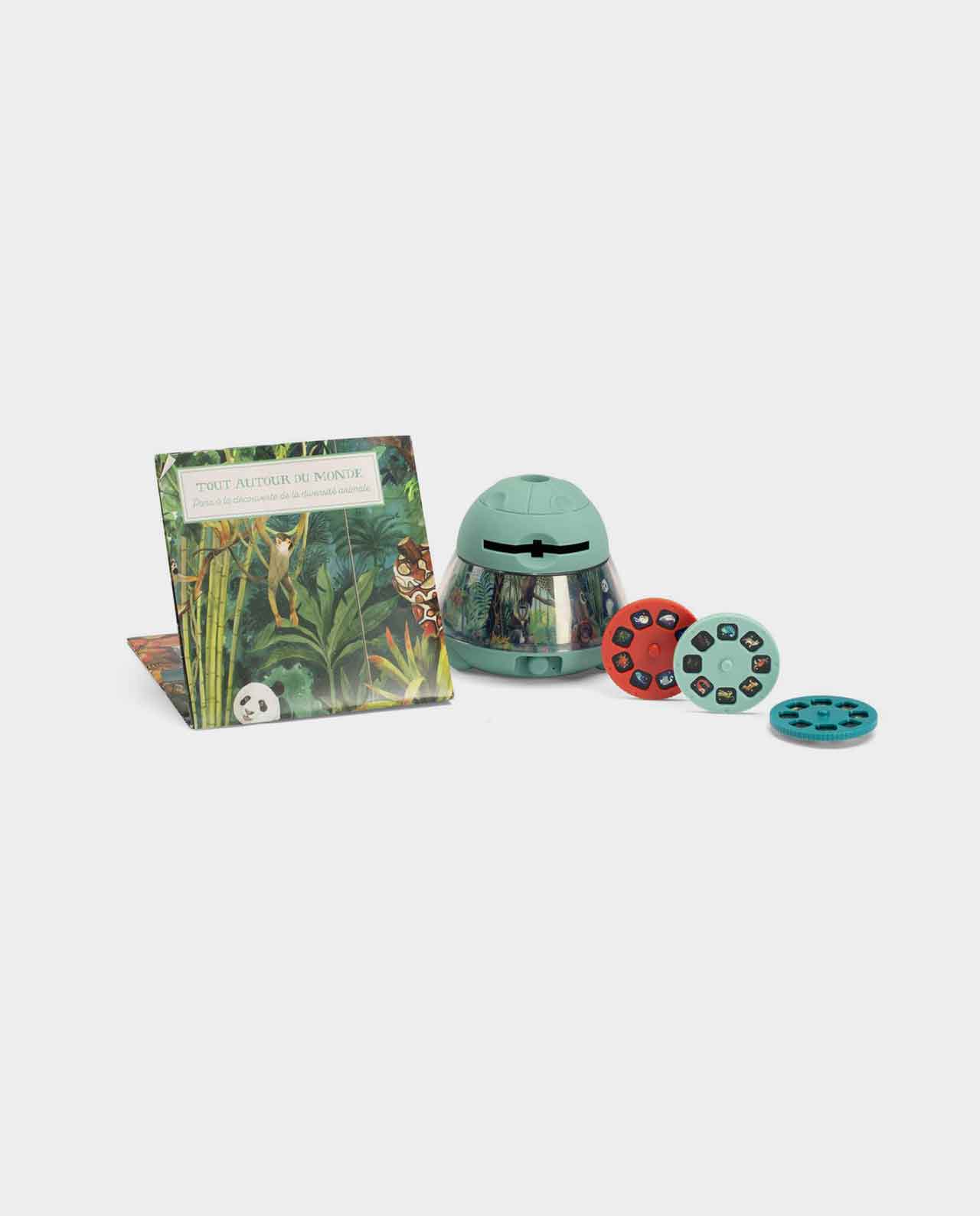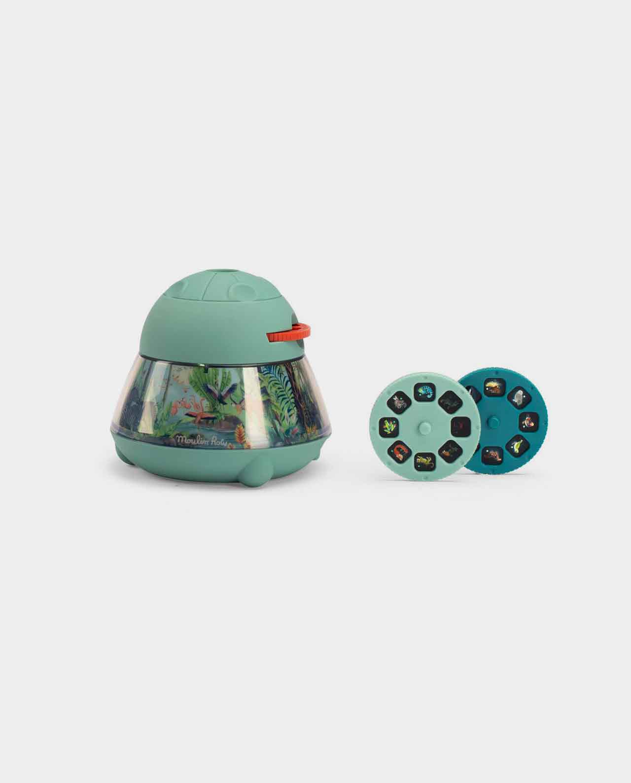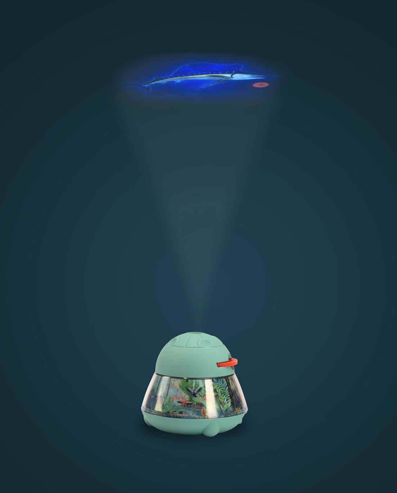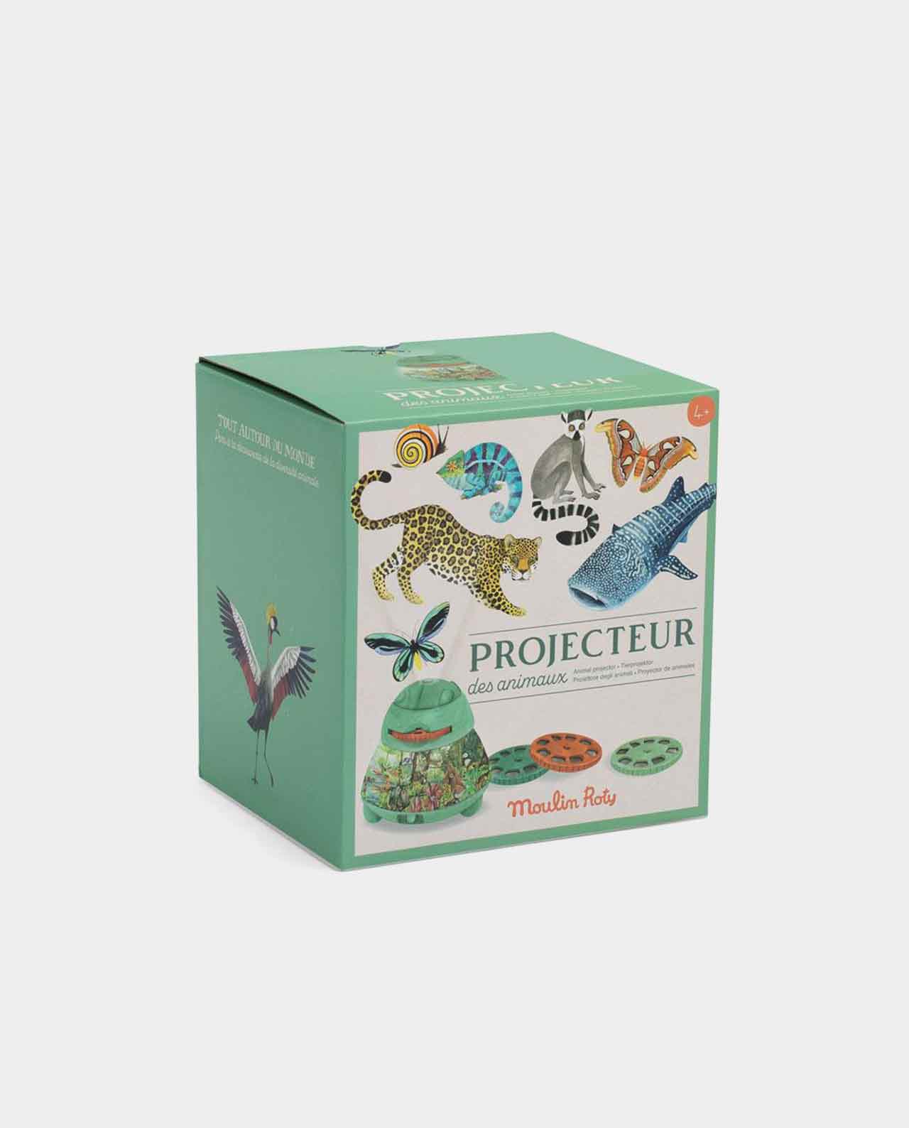 Descubre el Animal Proyector de Moulin Roty: 24 imágenes para proyectar y para estimular la imaginación contando hermosas historias sobre animales en el cielo, el mar y la tierra. La luz nocturna incorporada ilumina un hermoso paisaje y se apaga después de 15 minutos.