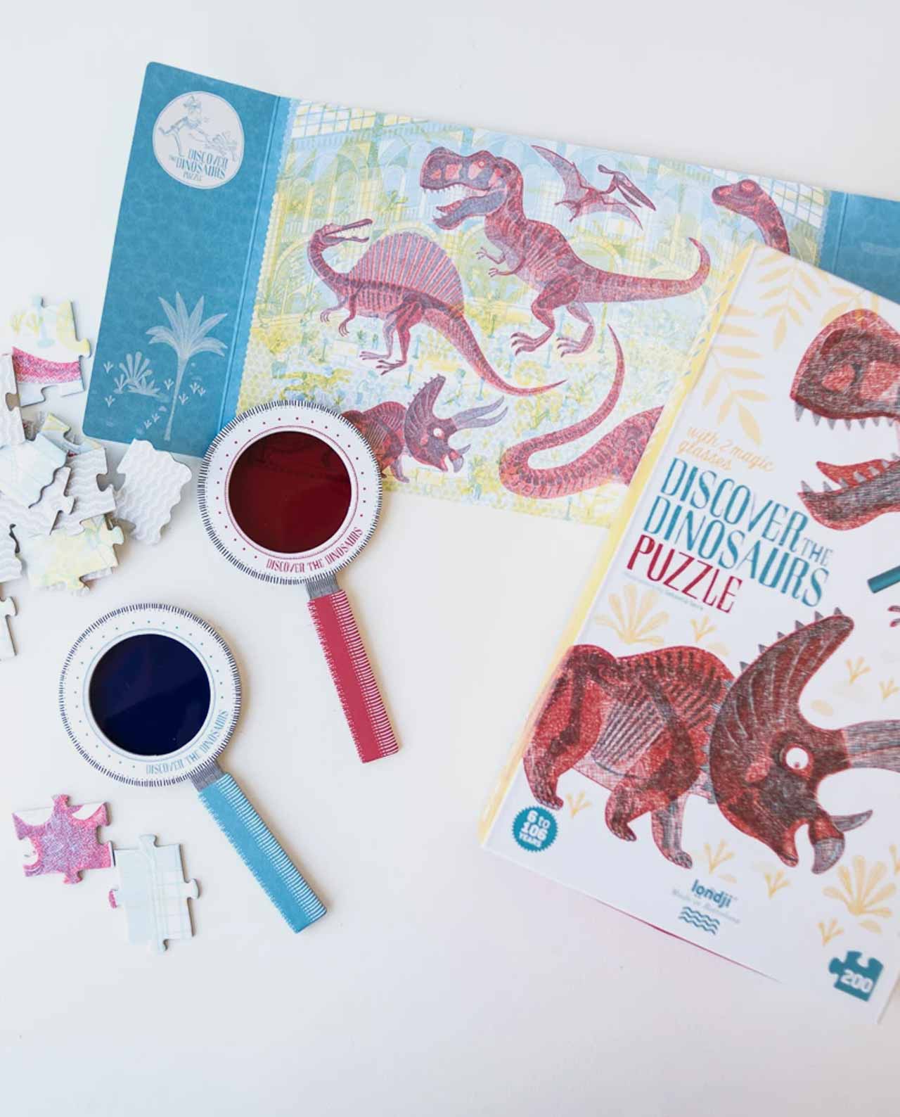 El juego incluye un puzzle de 200 piezas y dos lupas para descubrir los dos universos.